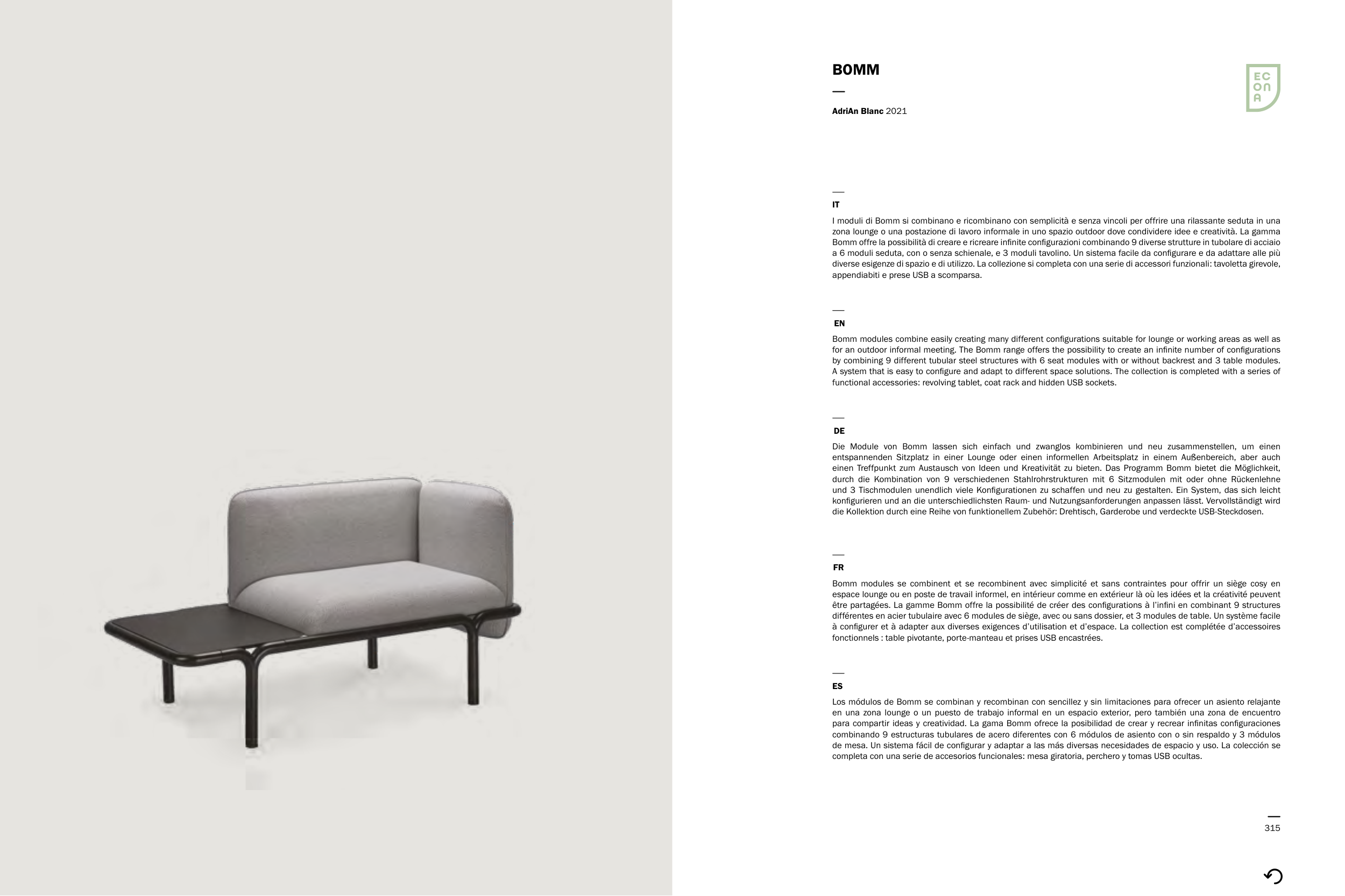 for an outdoor informal meeting. The Bomm range offers the possibility to create an infinite number of configurations