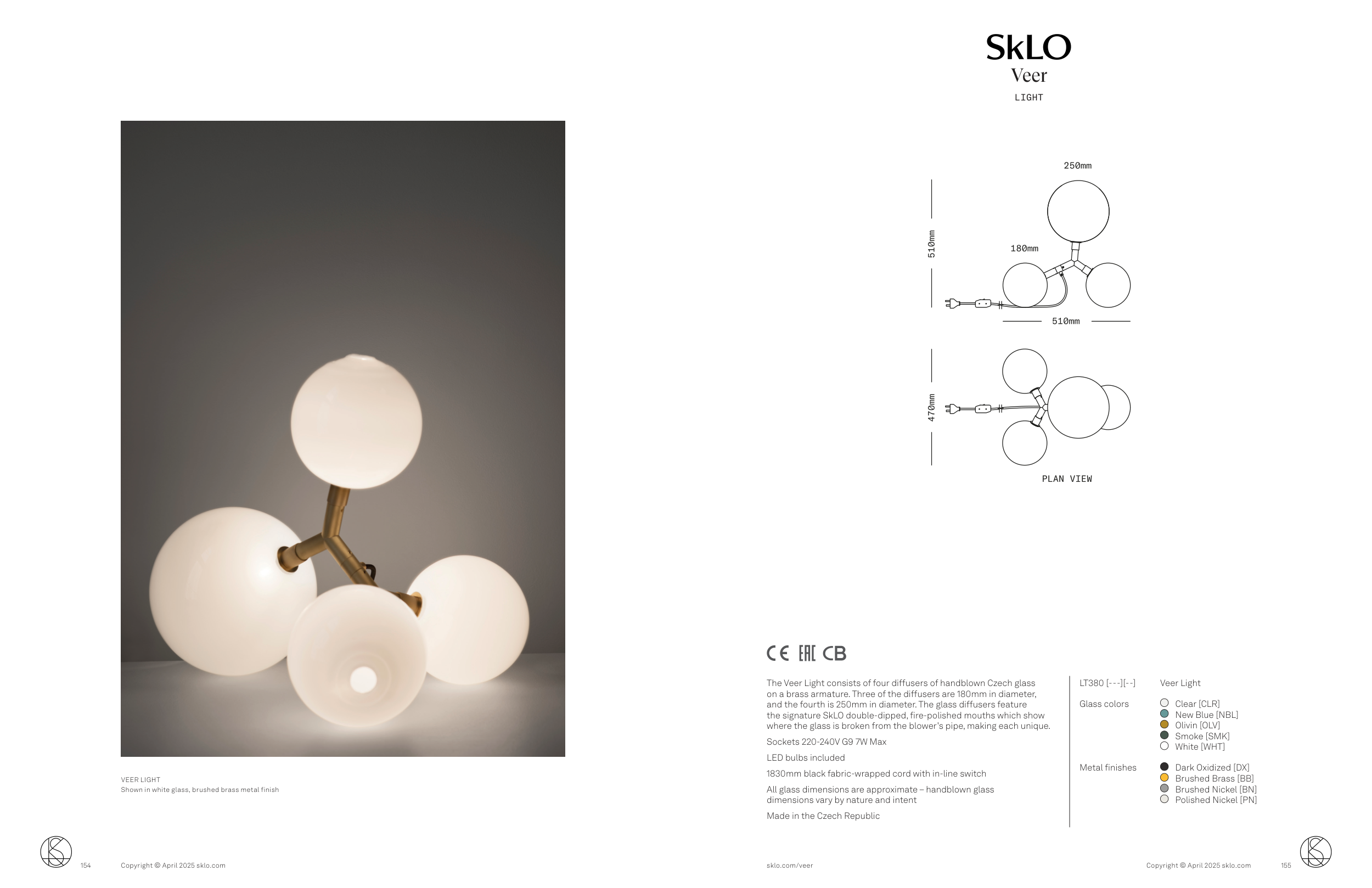 The Veer Light consists of four diffusers of handblown Czech glass