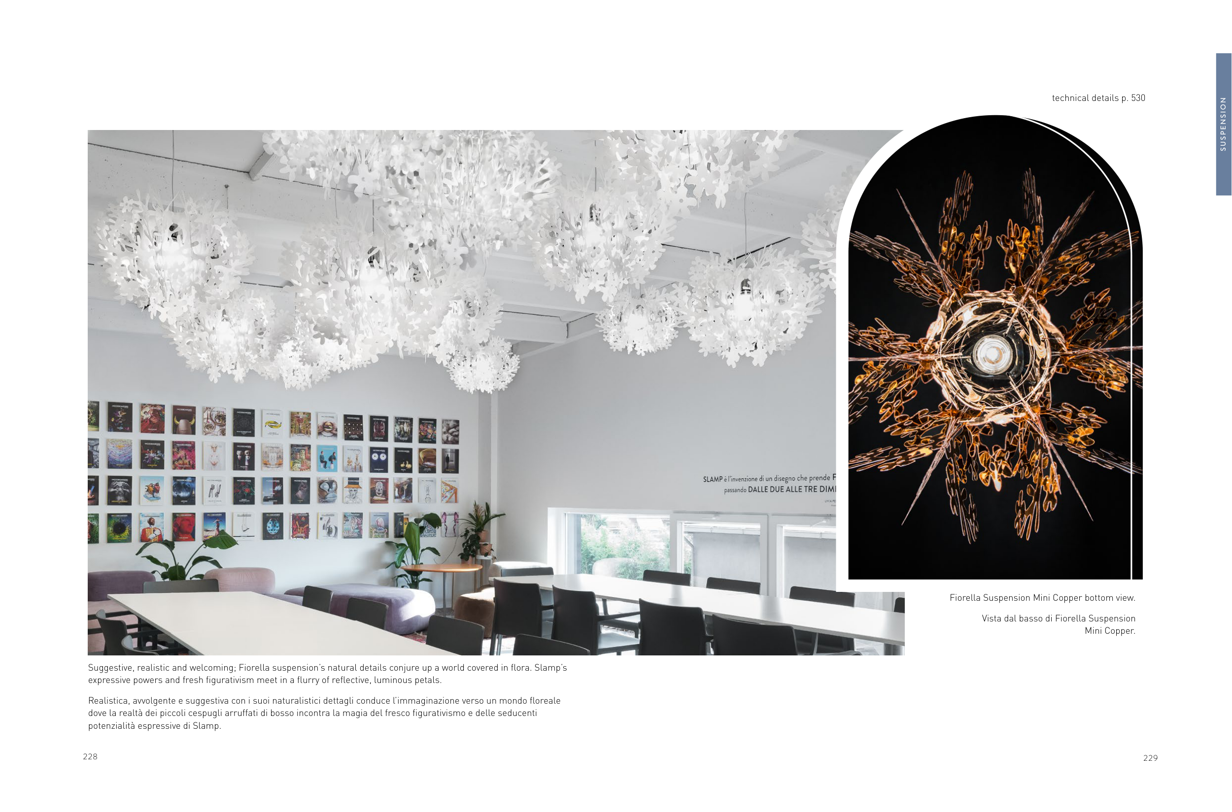 Suggestive, realistic and welcoming; Fiorella suspension’s natural details conjure up a world covered in flora. Slamp’s