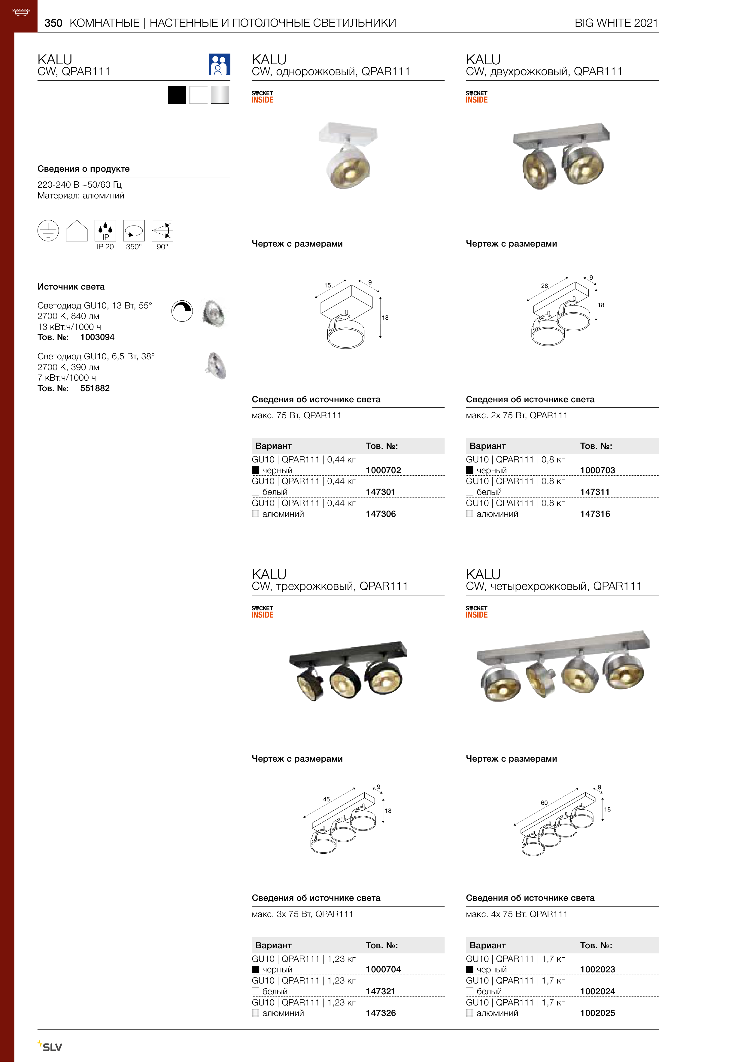макс. 4x 75 Вт, QPAR111