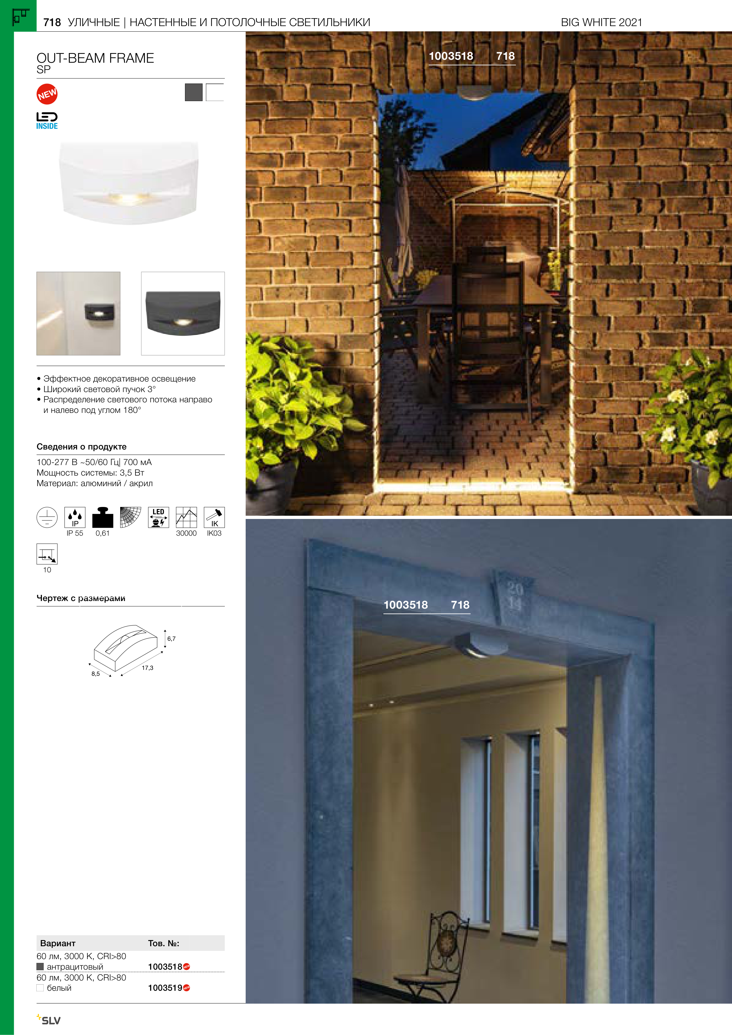 • Широкий световой пучок 3°