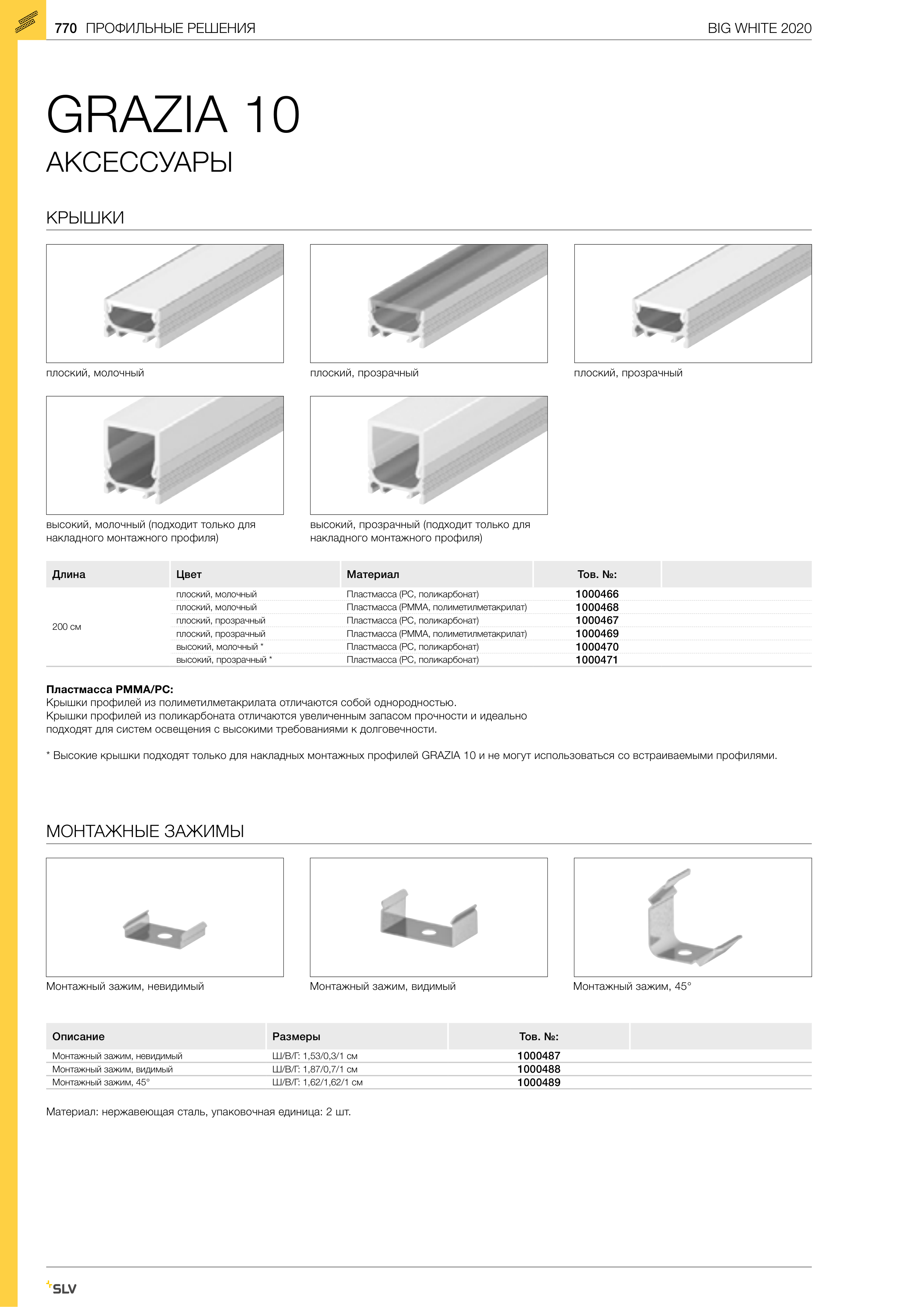 * Высокие крышки подходят только для накладных монтажных профилей GRAZIA 10 и не могут использоваться со встраиваемыми профилями.