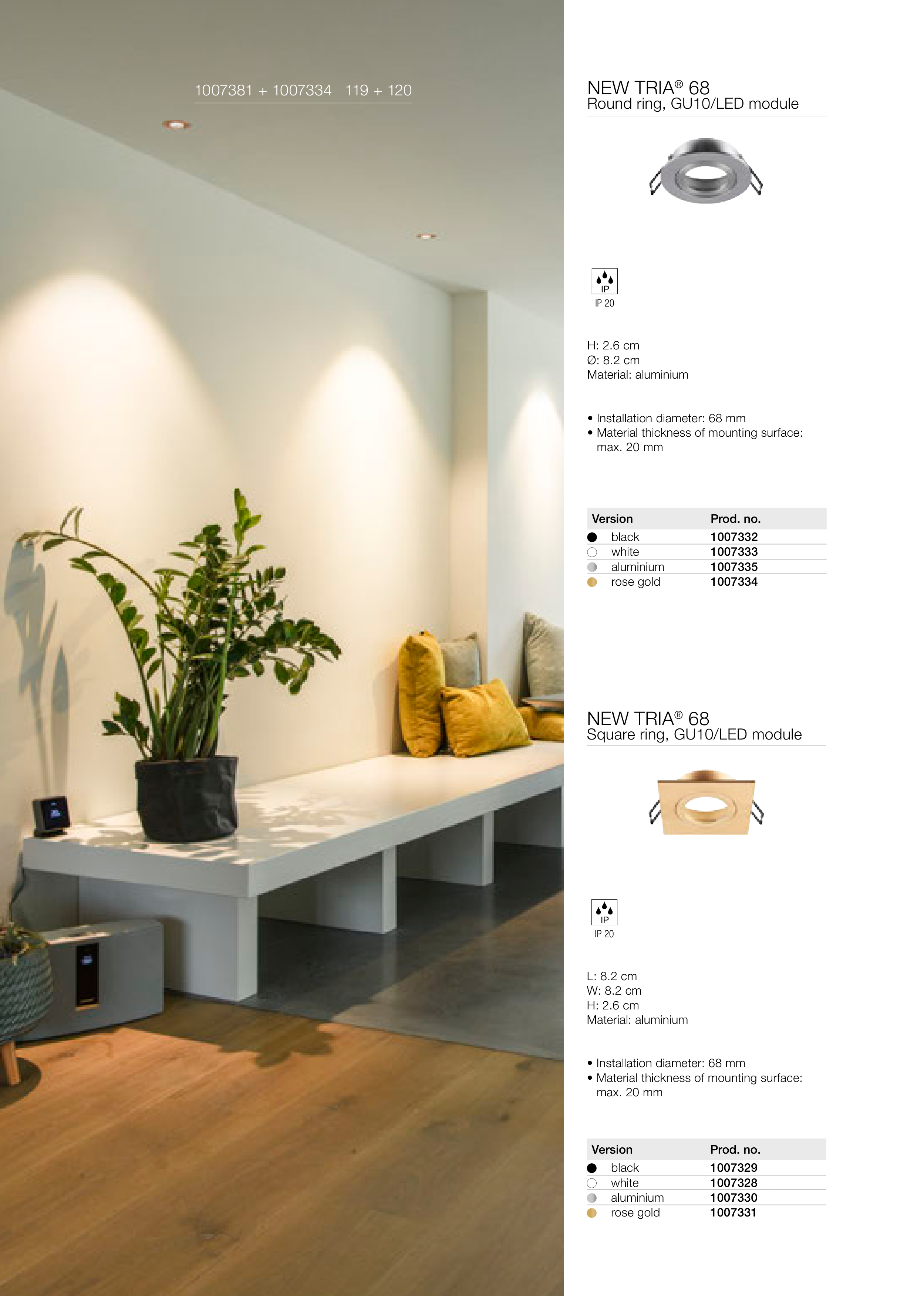 • Installation diameter: 68 mm