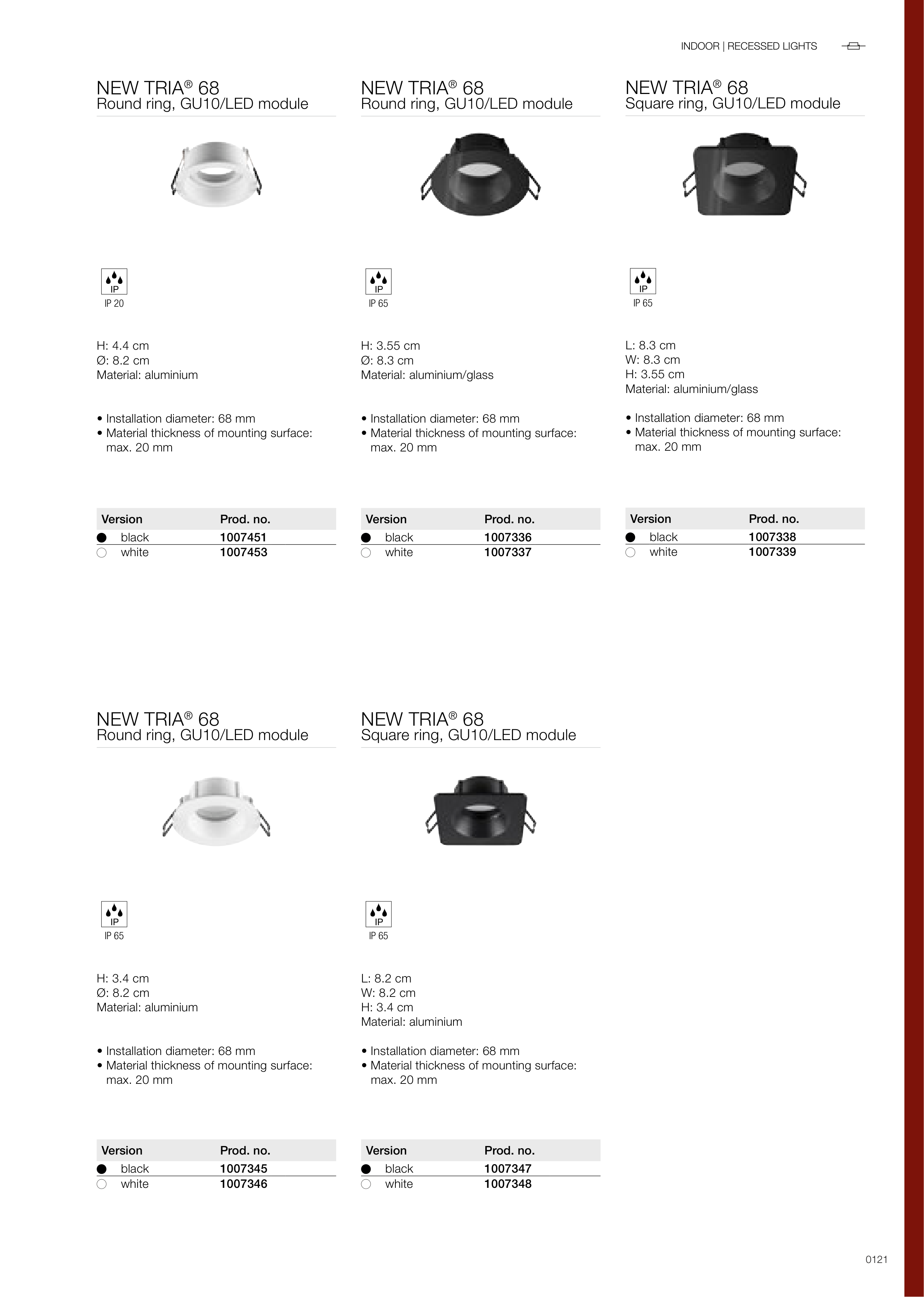 • Installation diameter: 68 mm