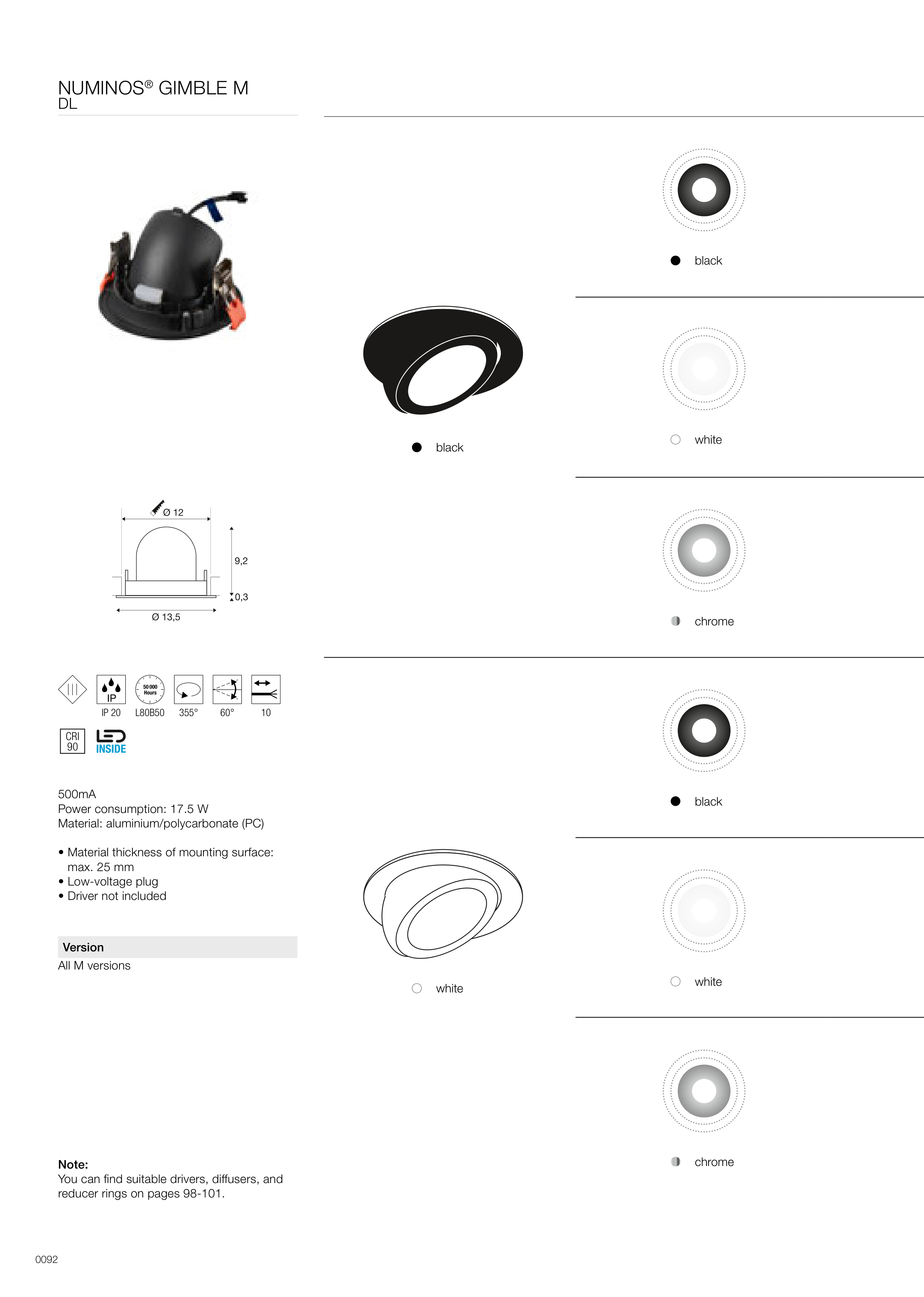 Material: aluminium/polycarbonate (PC)