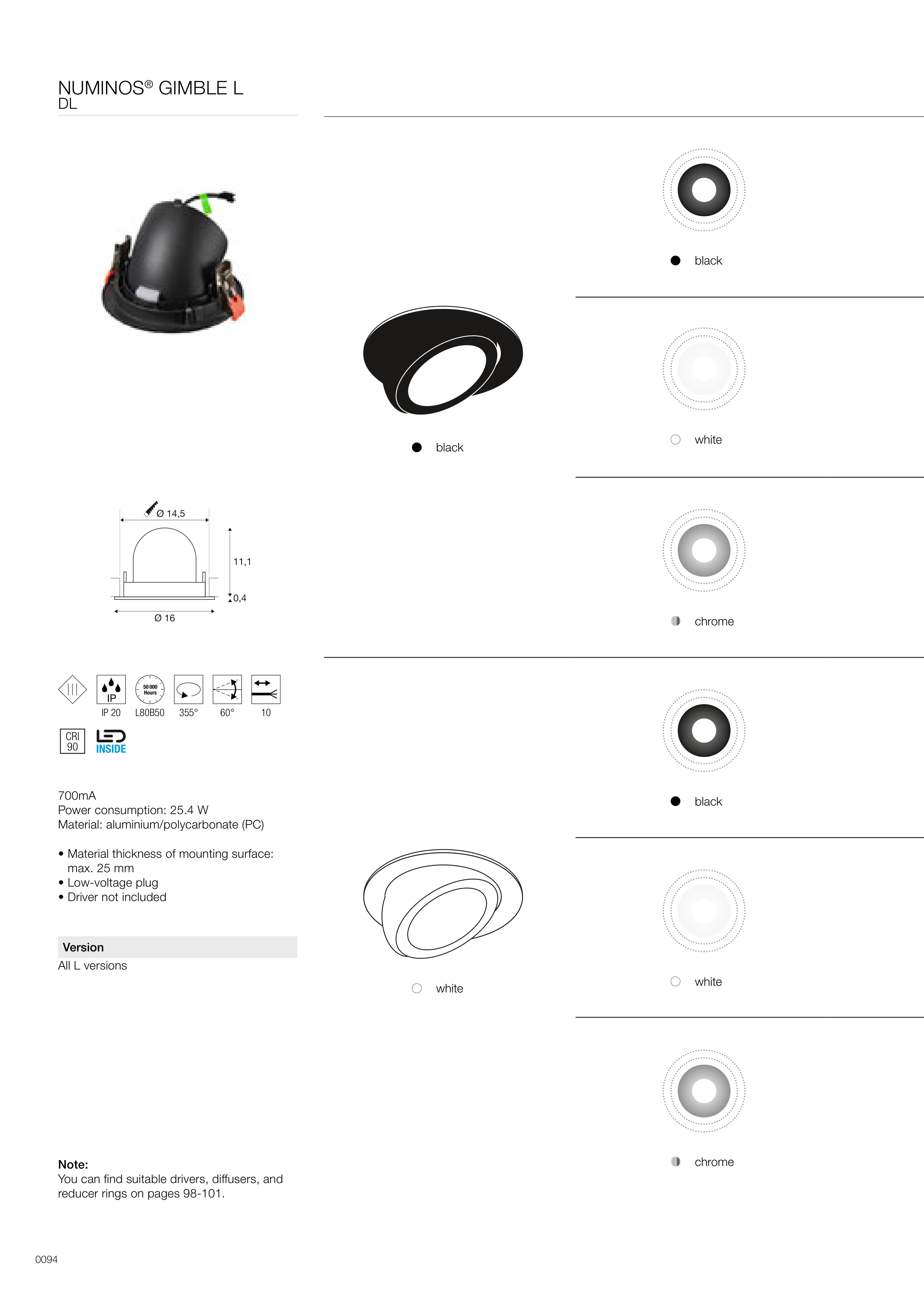 Material: aluminium/polycarbonate (PC)