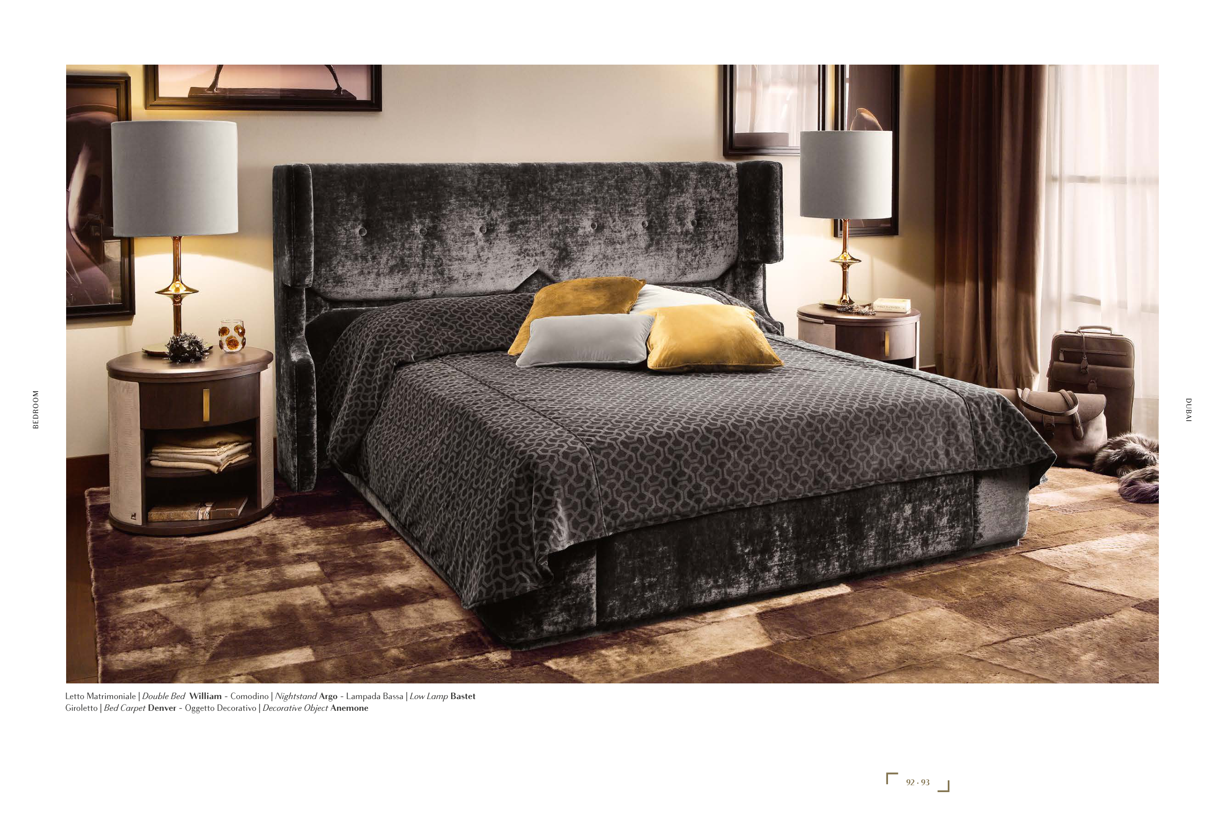 Letto Matrimoniale | Double Bed William - Comodino | Nightstand Argo - Lampada Bassa | Low Lamp Bastet