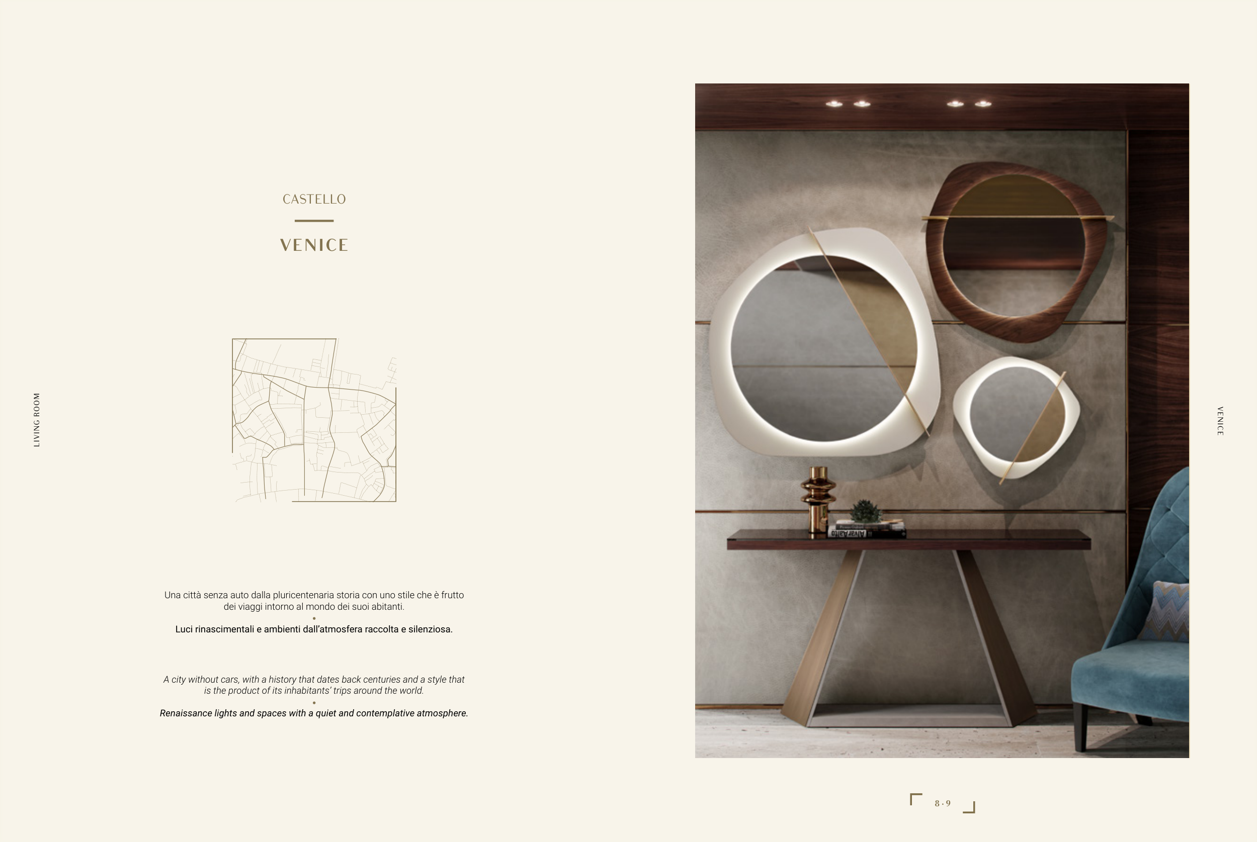 Renaissance lights and spaces with a quiet and contemplative atmosphere.