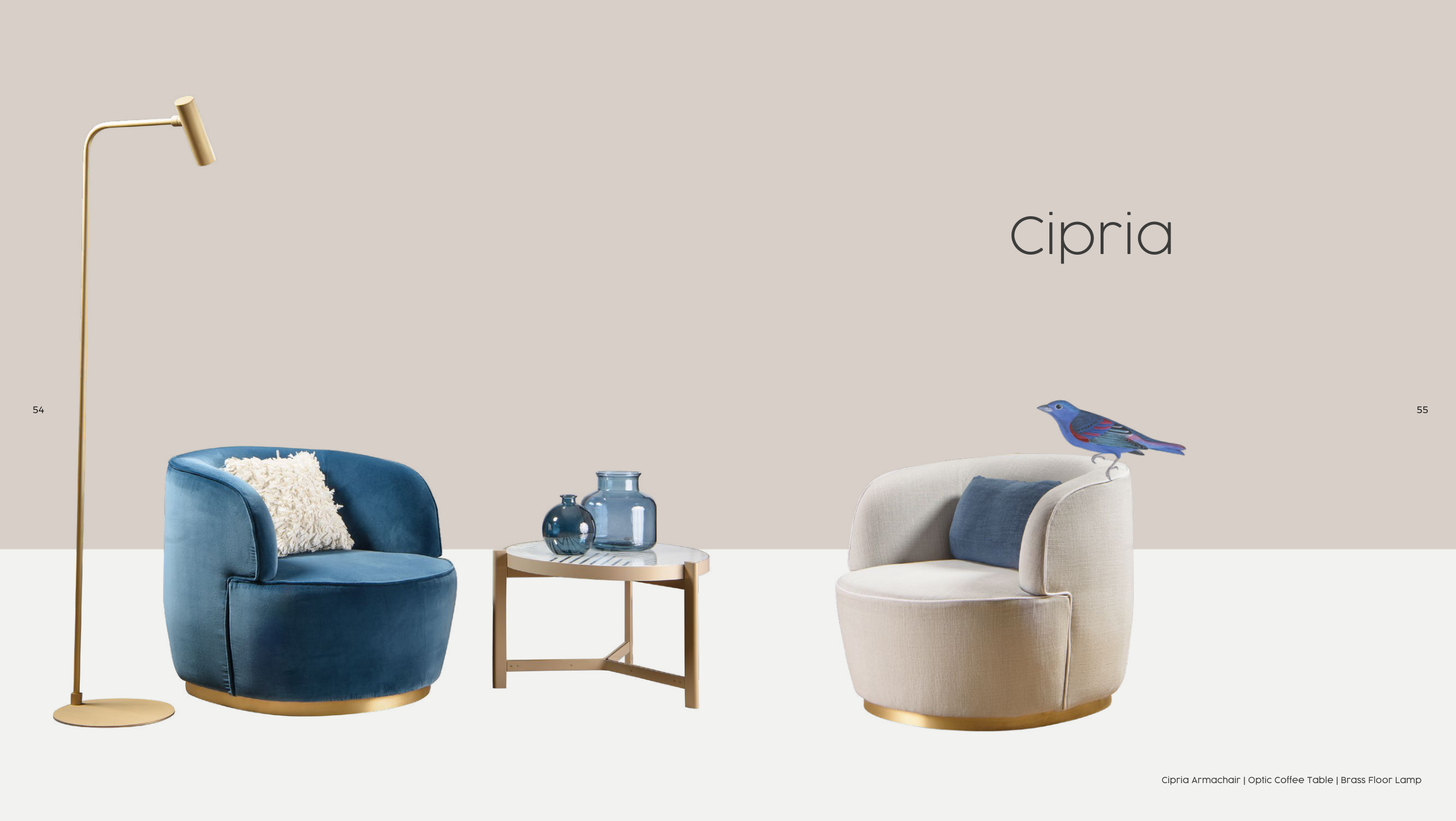Cipria Armachair | Optic Coffee Table | Brass Floor Lamp