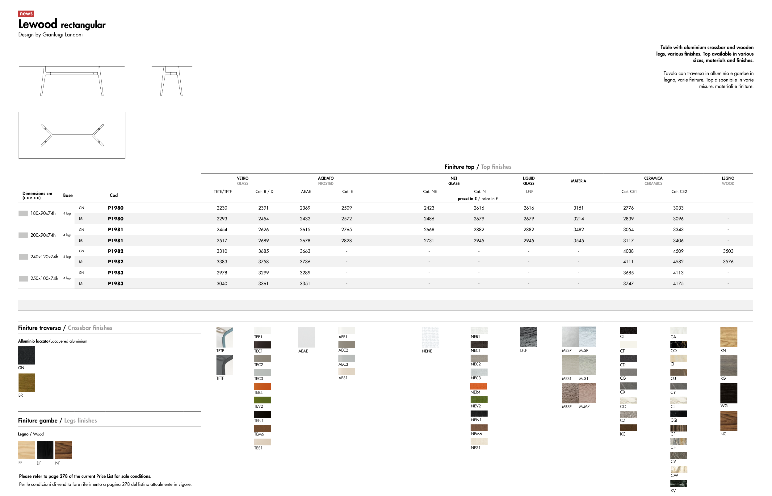 Per le condizioni di vendita fare riferimento a pagina 278 del listino attualmente in vigore.