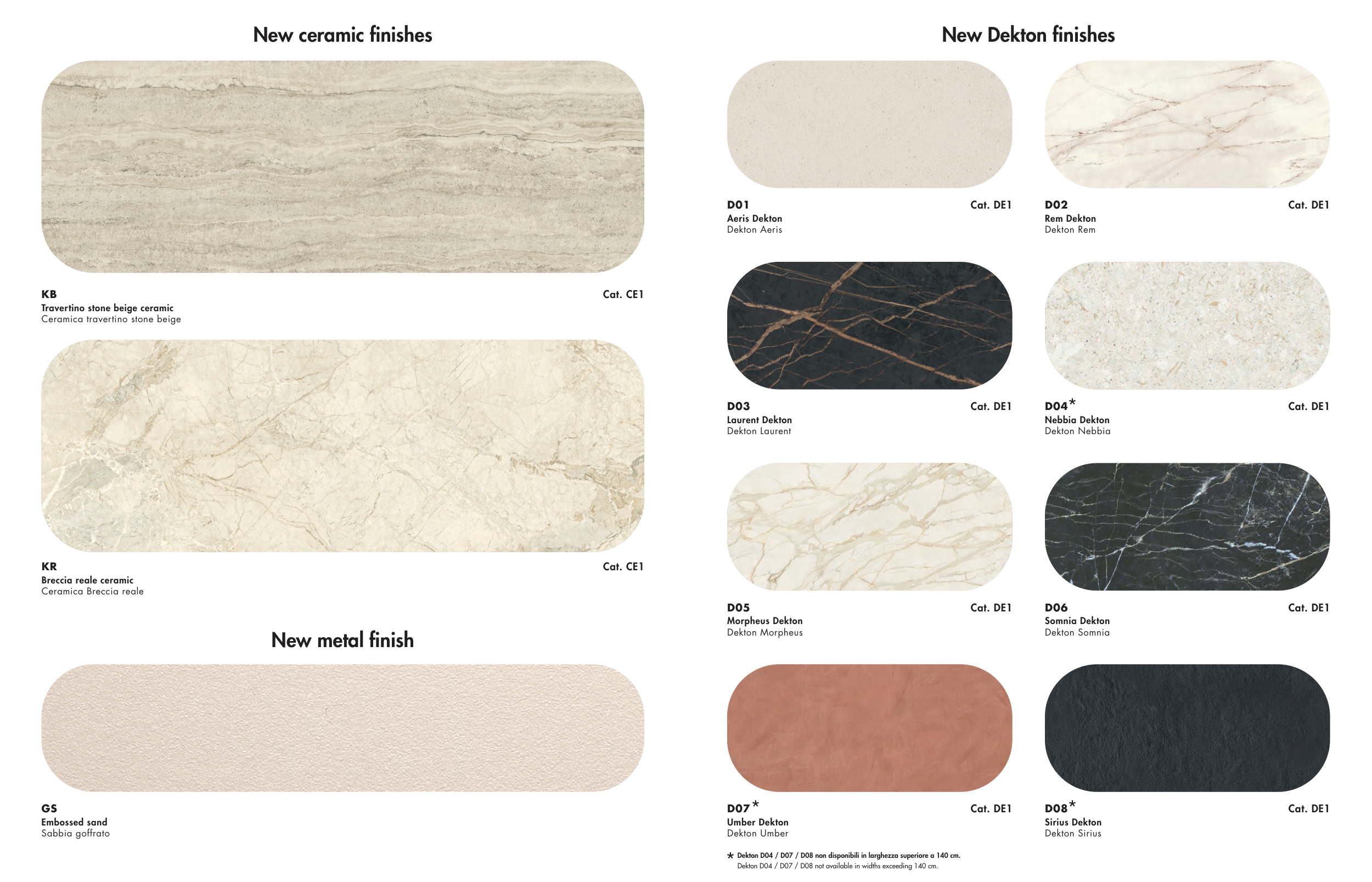 Dekton D04 / D07 / D08 non disponibili in larghezza superiore a 140 cm.