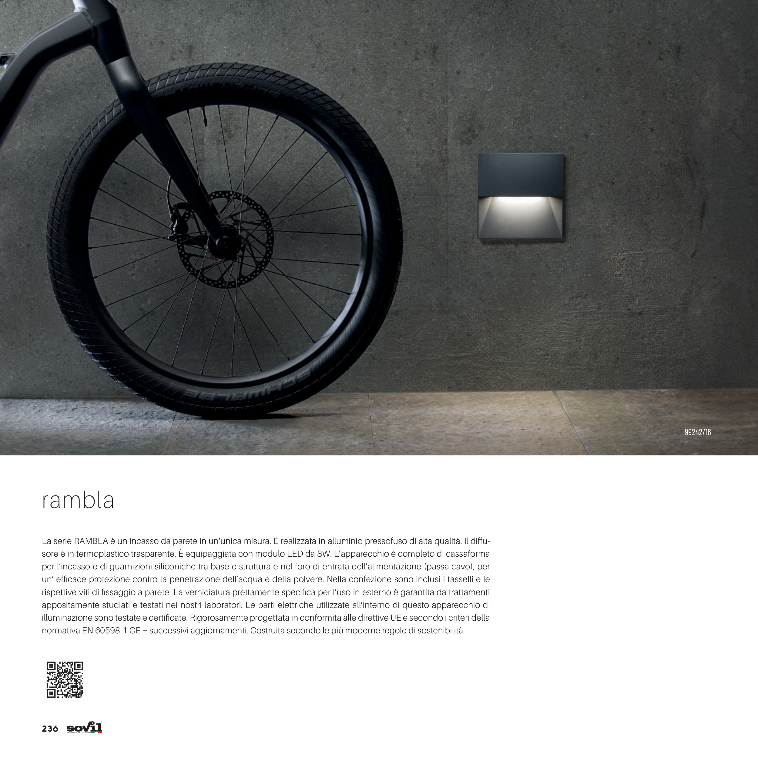 sore è in termoplastico trasparente. È equipaggiata con modulo LED da 8W. L’apparecchio è completo di cassaforma