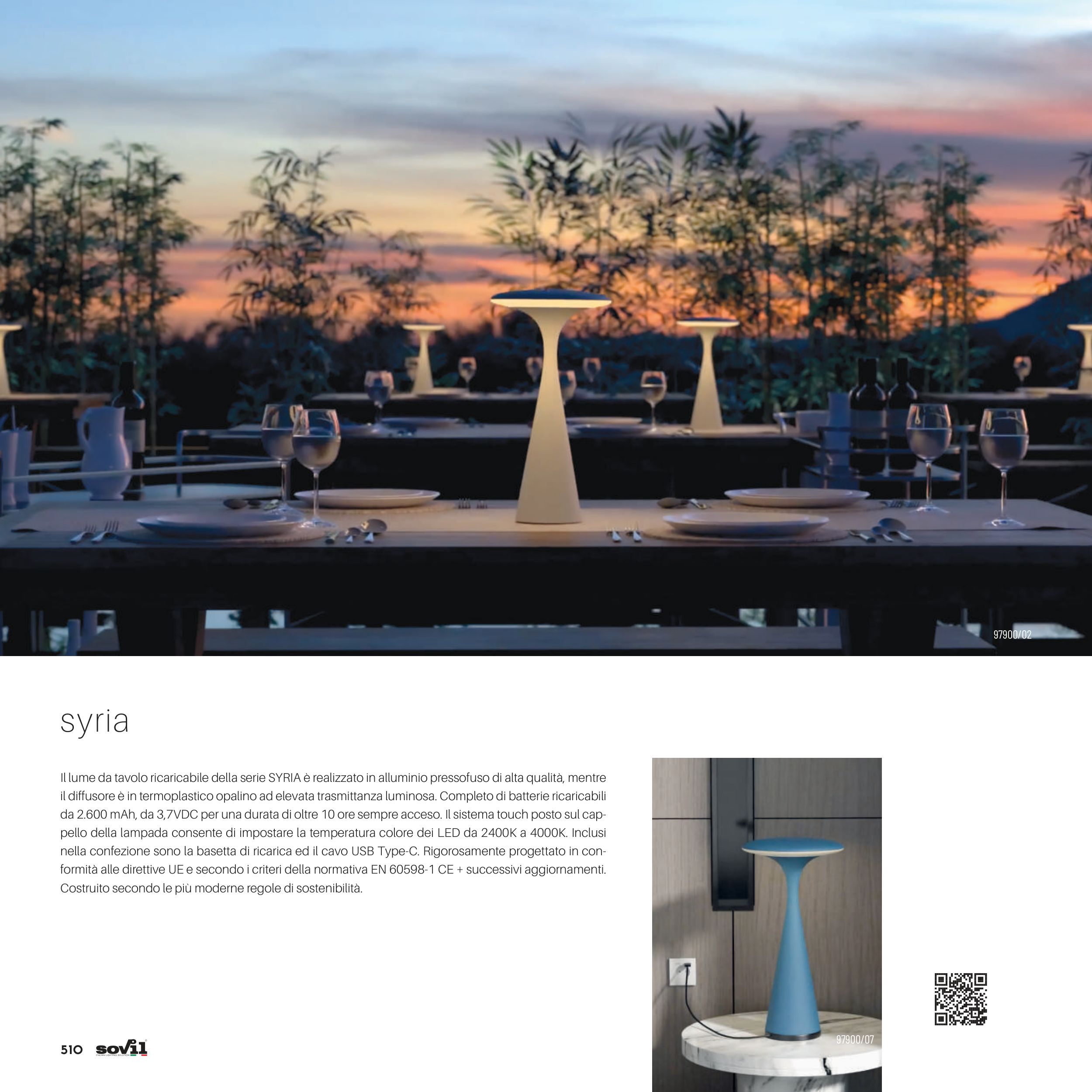 Il lume da tavolo ricaricabile della serie SYRIA è realizzato in alluminio pressofuso di alta qualità, mentre