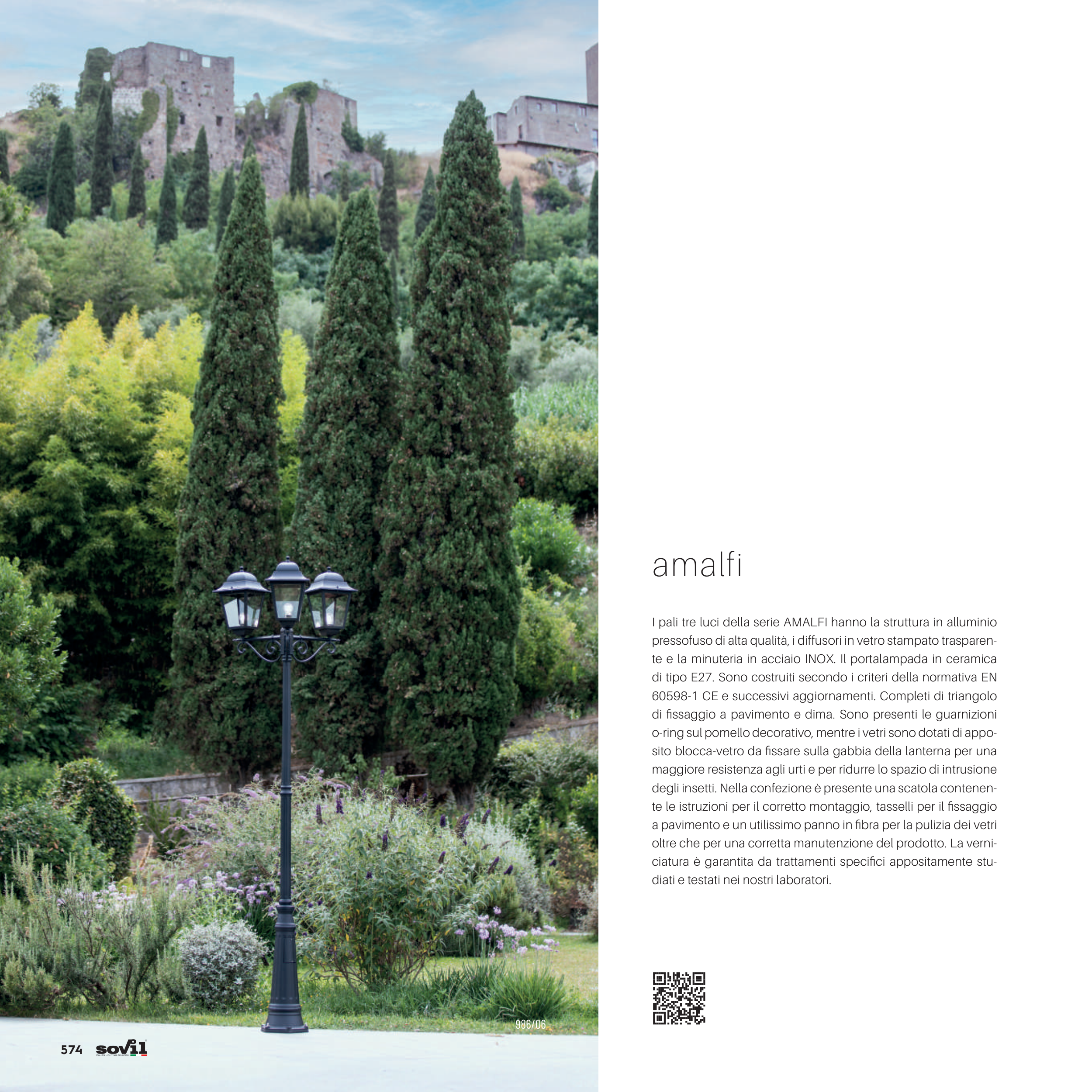 I pali tre luci della serie AMALFI hanno la struttura in alluminio