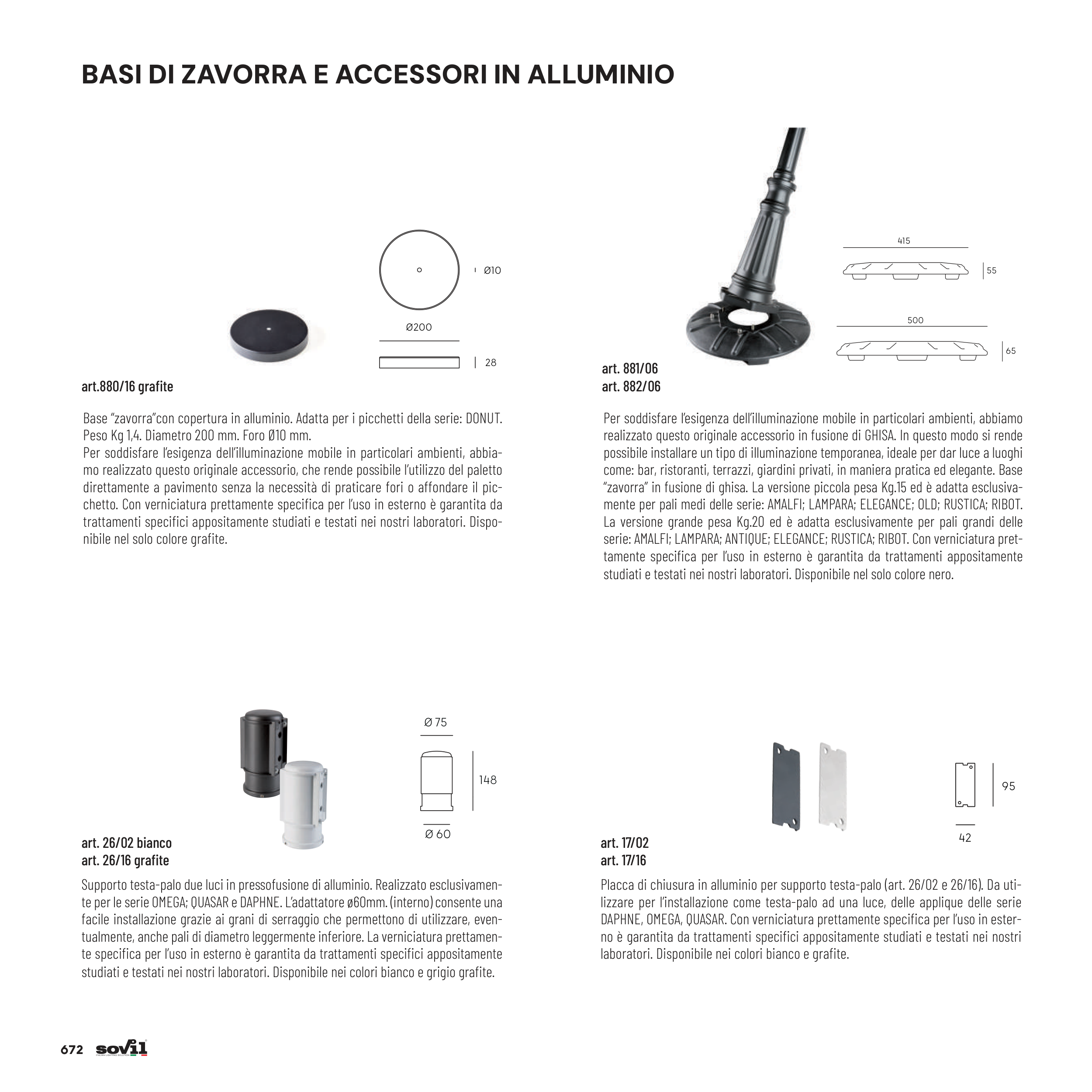 mente per pali medi delle serie: AMALFI; LAMPARA; ELEGANCE; OLD; RUSTICA; RIBOT.