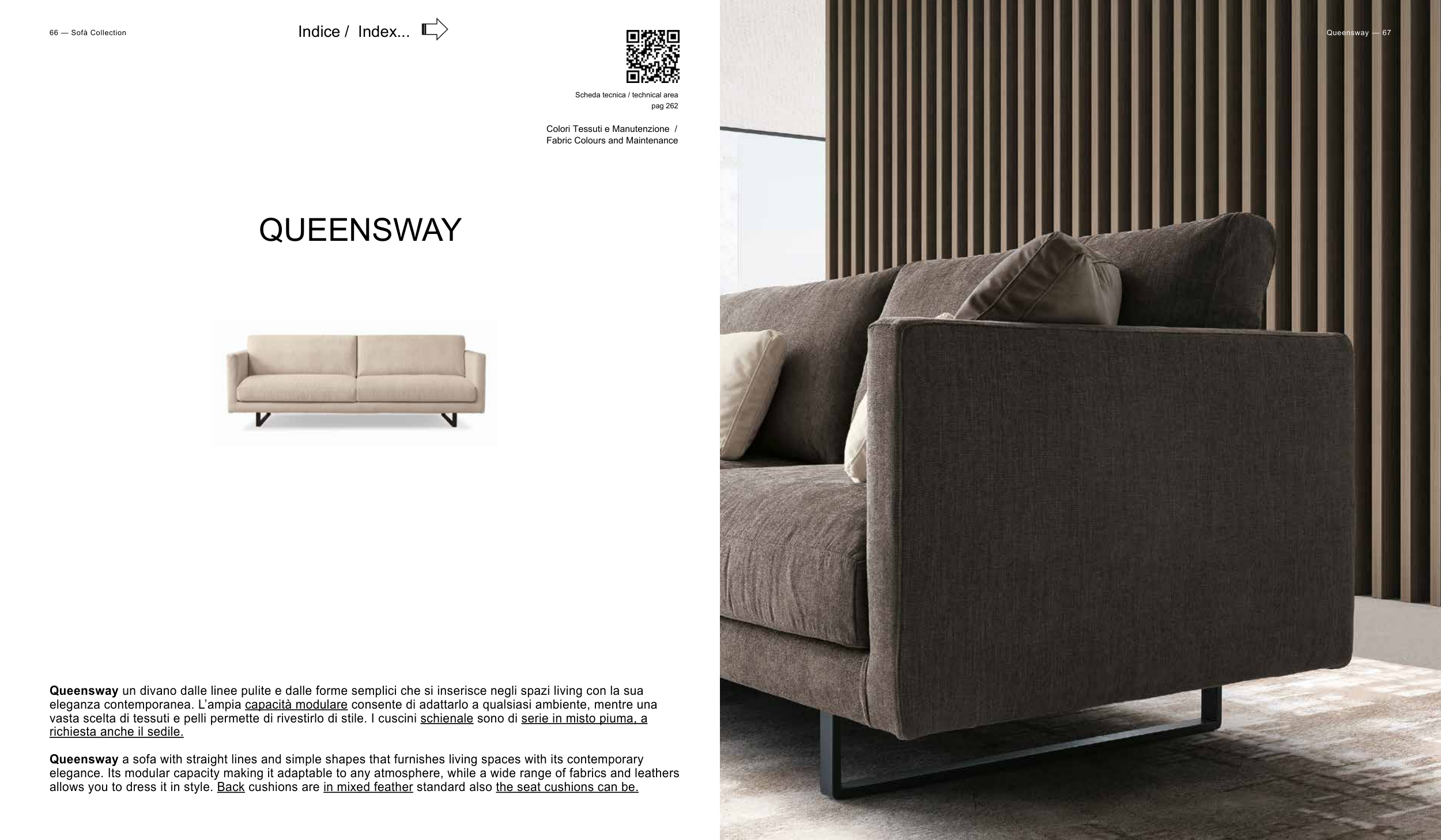 Queensway a sofa with straight lines and simple shapes that furnishes living spaces with its contemporary