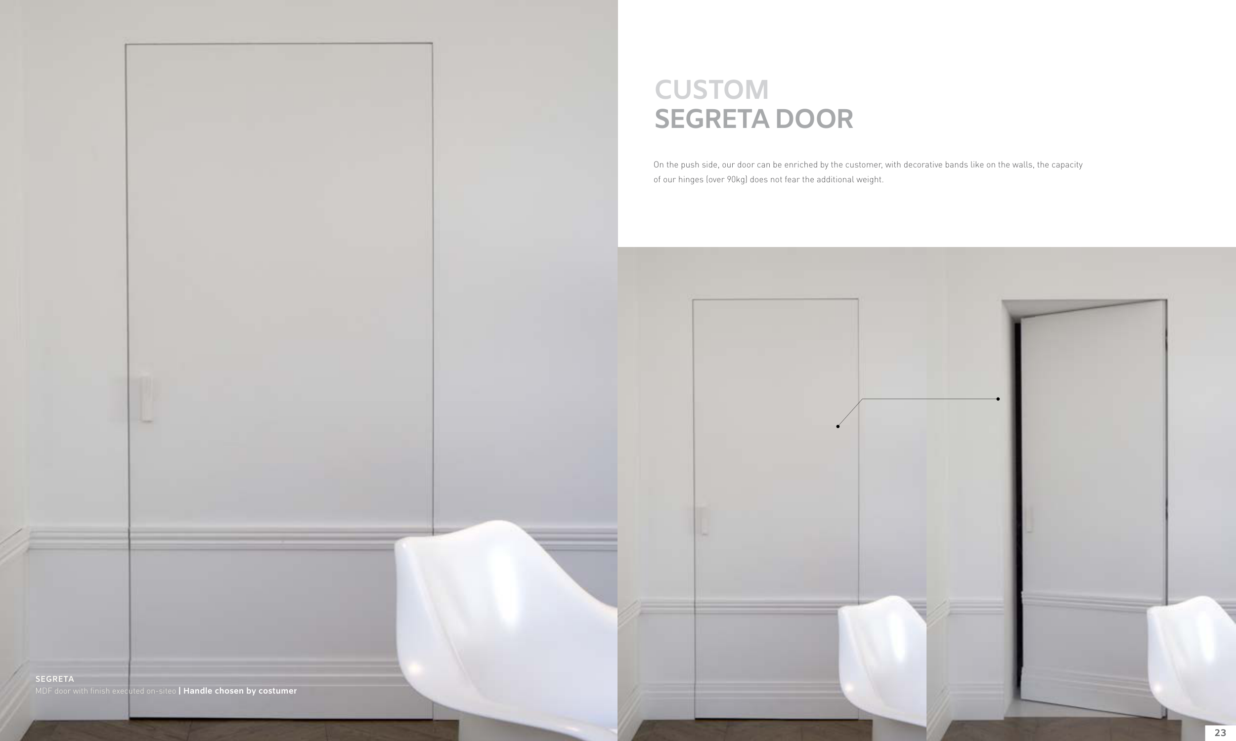 On the push side, our door can be enriched by the customer, with decorative bands like on the walls, the capacity