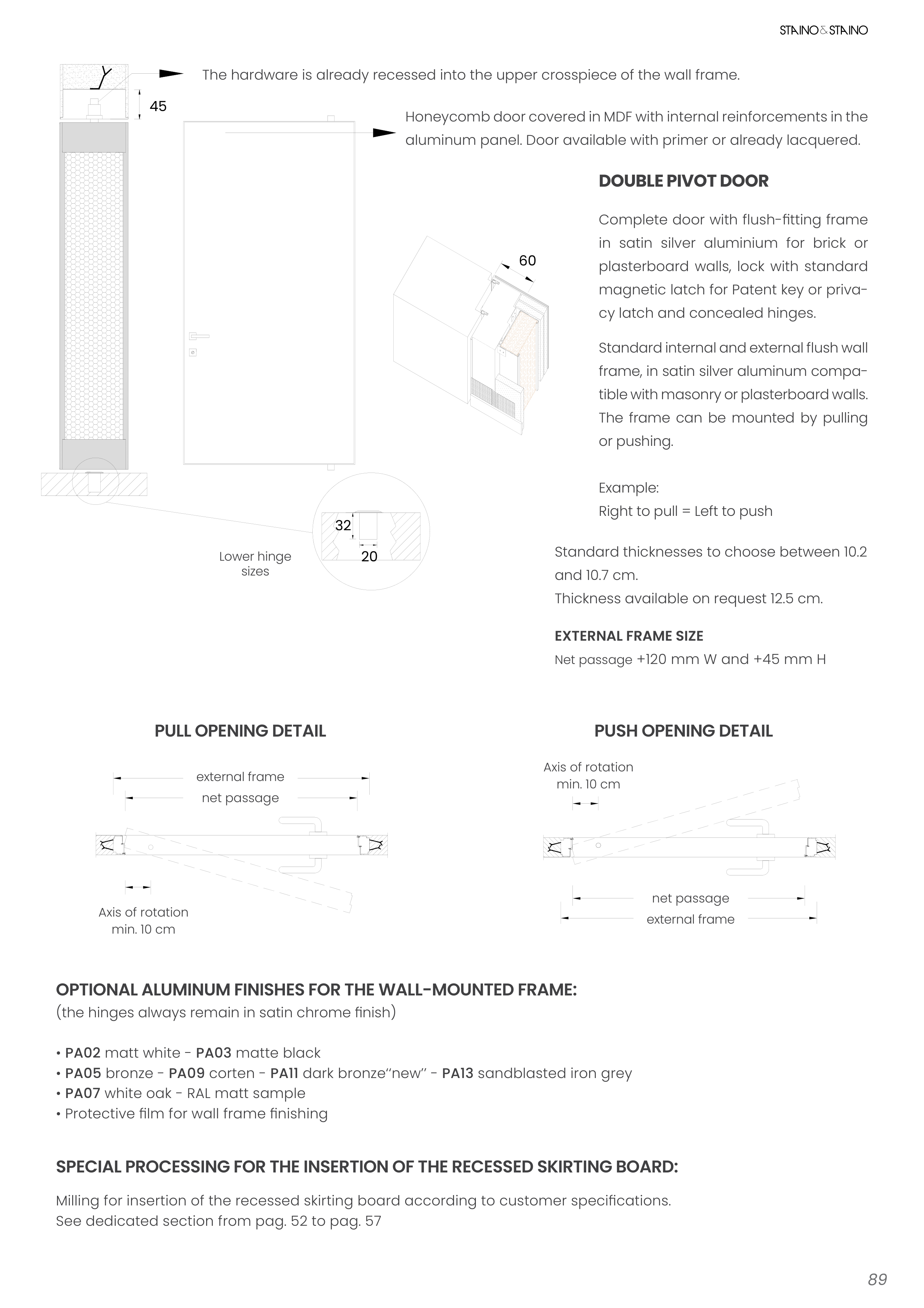 OPTIONAL ALUMINUM FINISHES FOR THE WALL-MOUNTED FRAME: