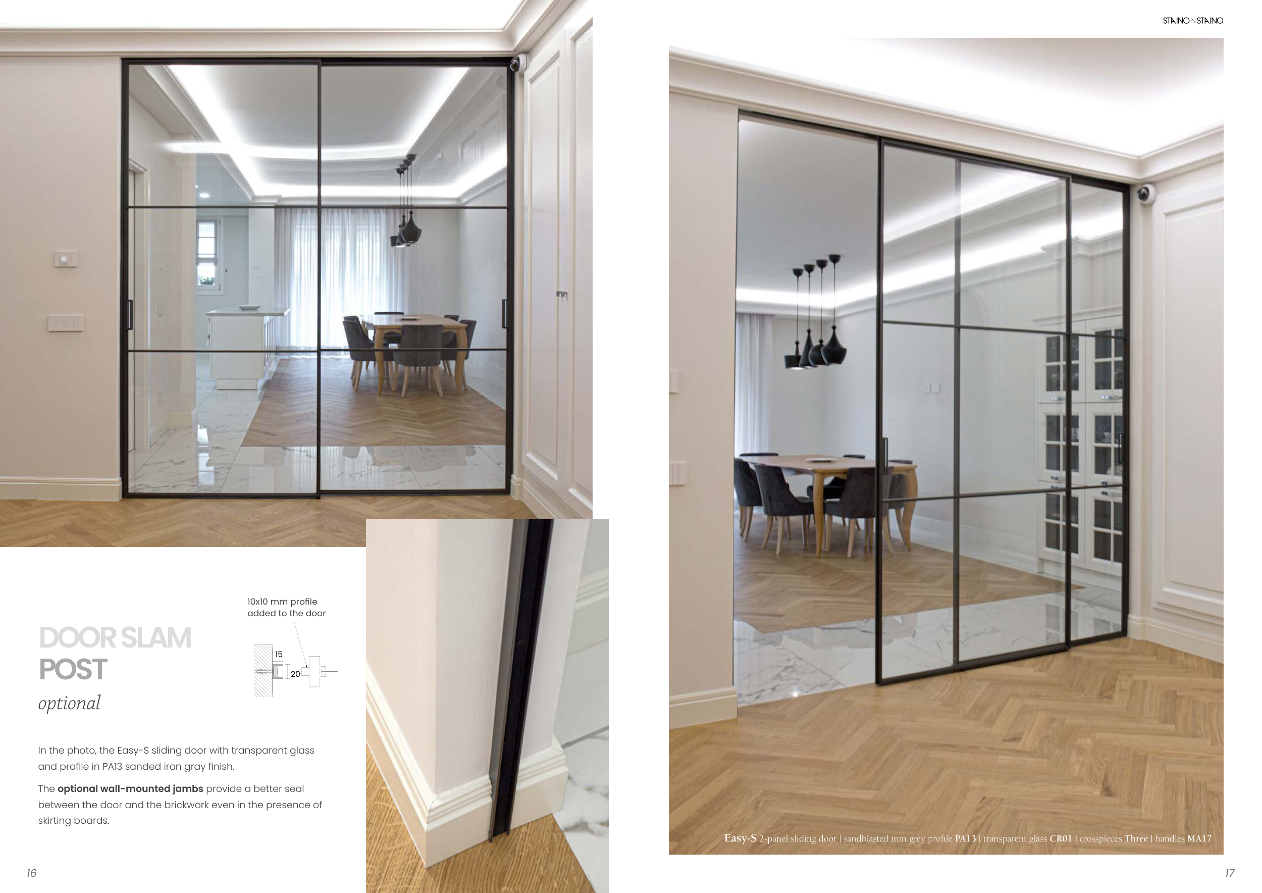 Easy-S 2-panel sliding door | sandblasted iron grey profile PA13 | transparent glass CR01 | crosspieces Three | handles MA17