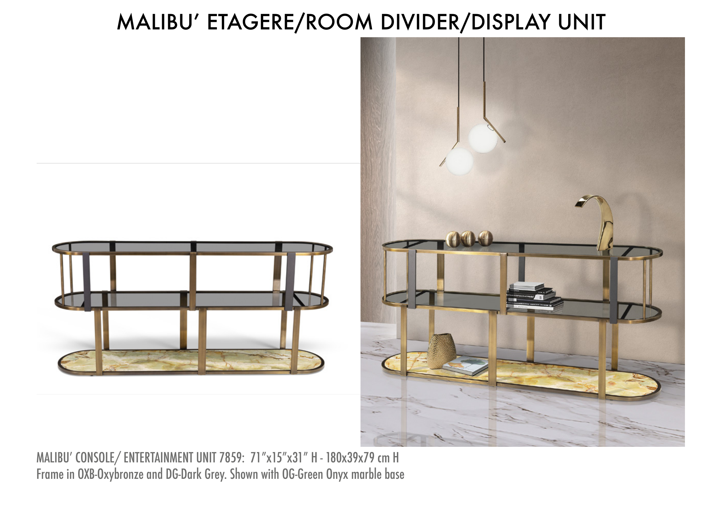 MALIBU’ CONSOLE/ ENTERTAINMENT UNIT 7859: 71”x15”x31” H - 180x39x79 cm H