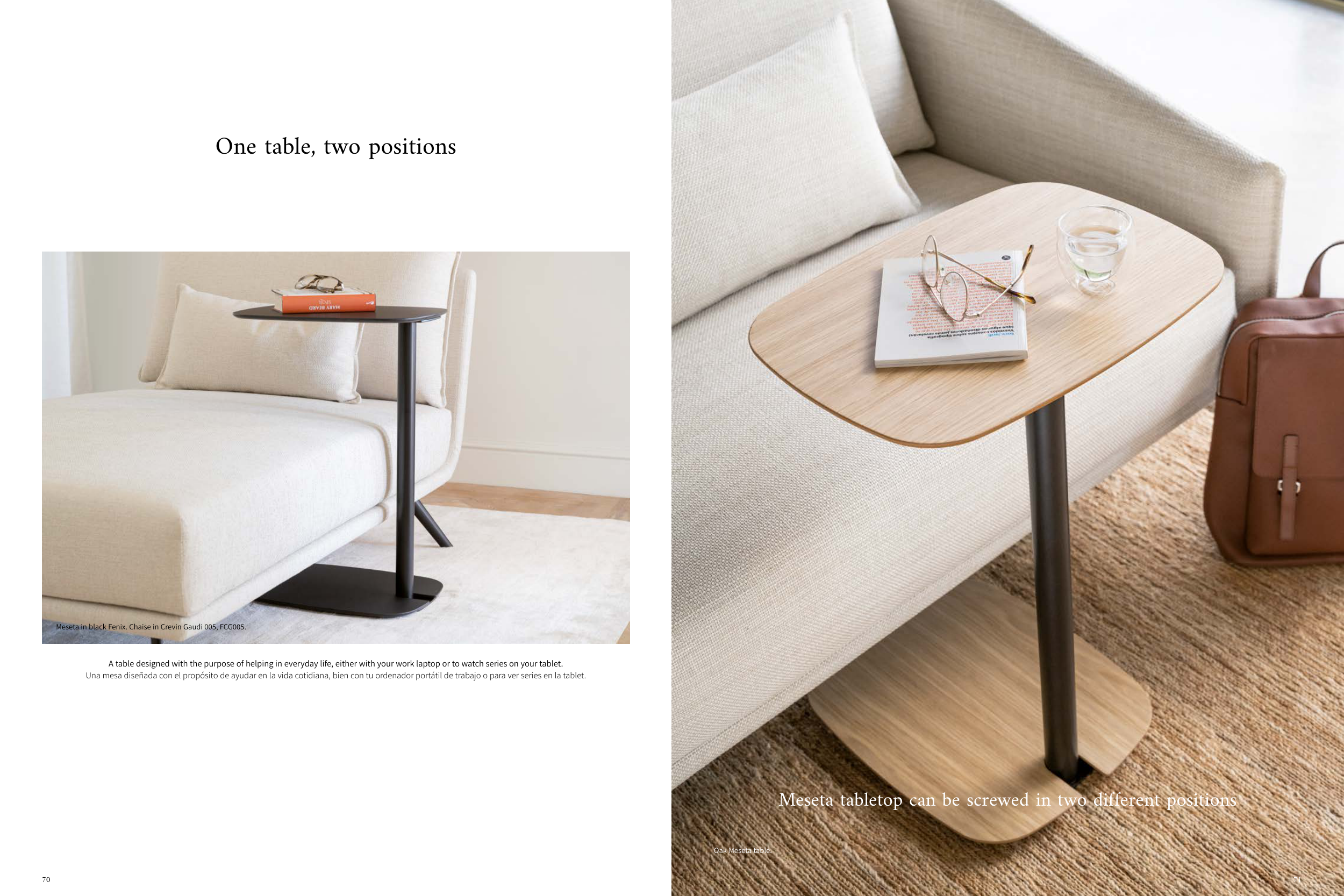 Meseta tabletop can be screwed in two different positions