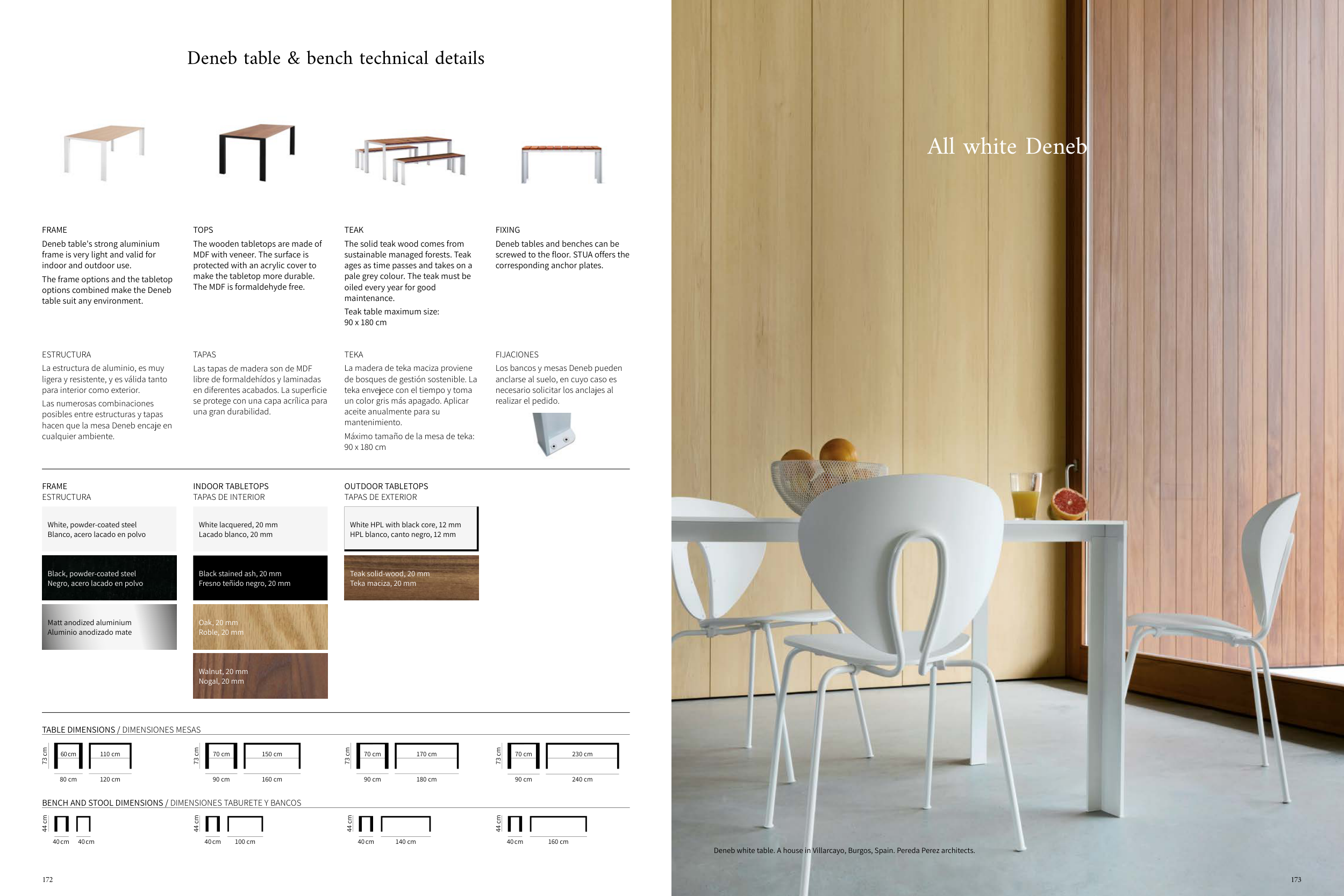 Deneb table & bench technical details