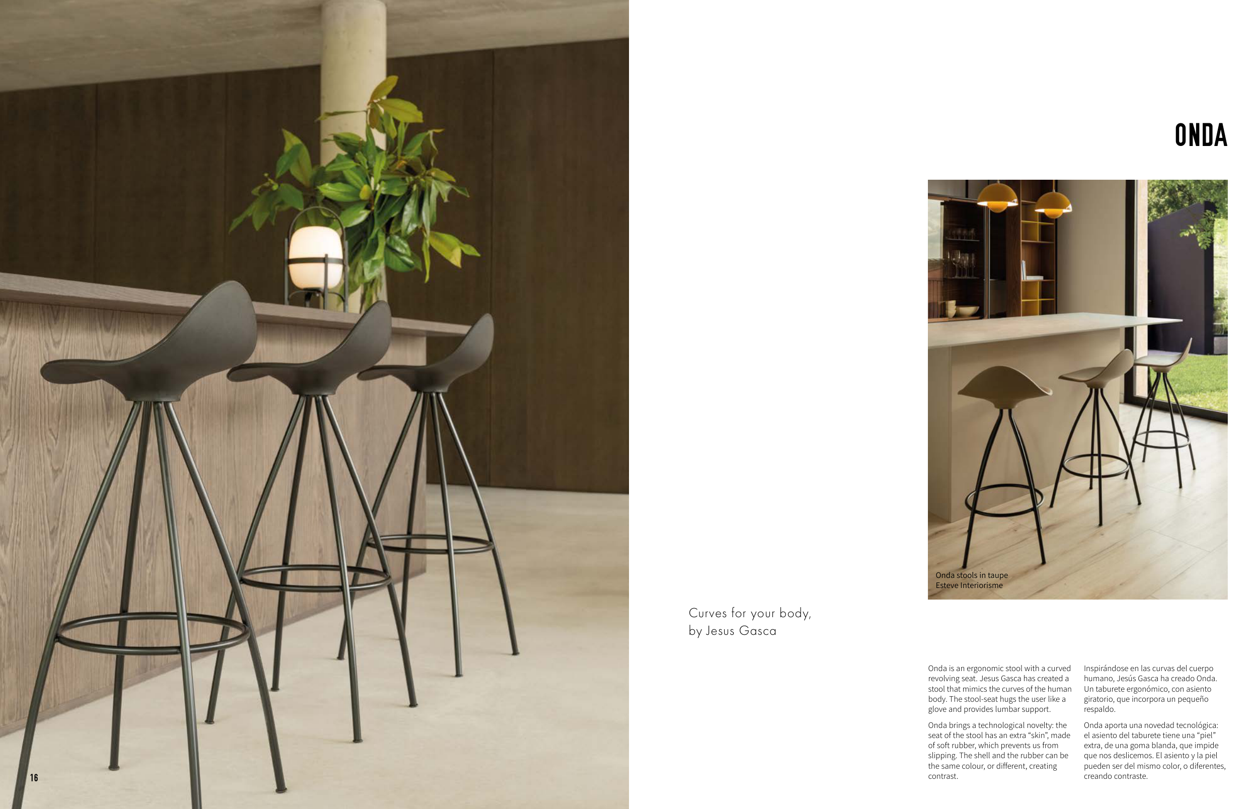 Onda is an ergonomic stool with a curved