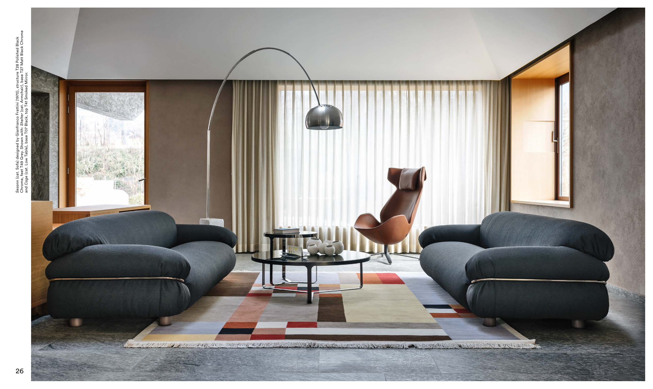 Sesann (cat. Sofa) designed by Gianfranco Frattini (1970), structure T28 Polished Black