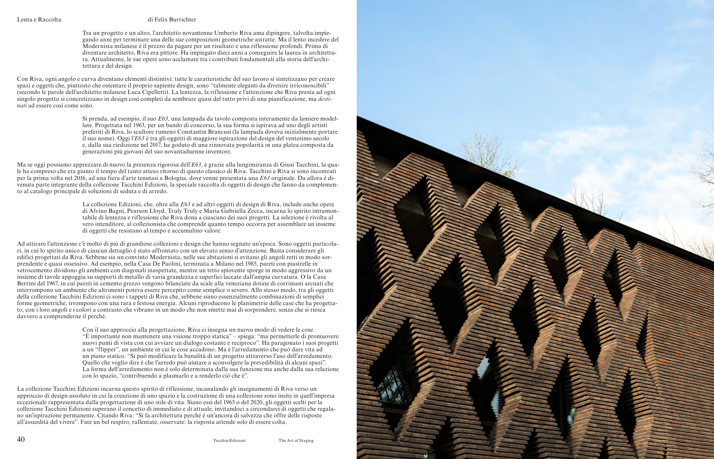 La collezione Tacchini Edizioni incarna questo spirito di riflessione, incanalando gli insegnamenti di Riva verso un