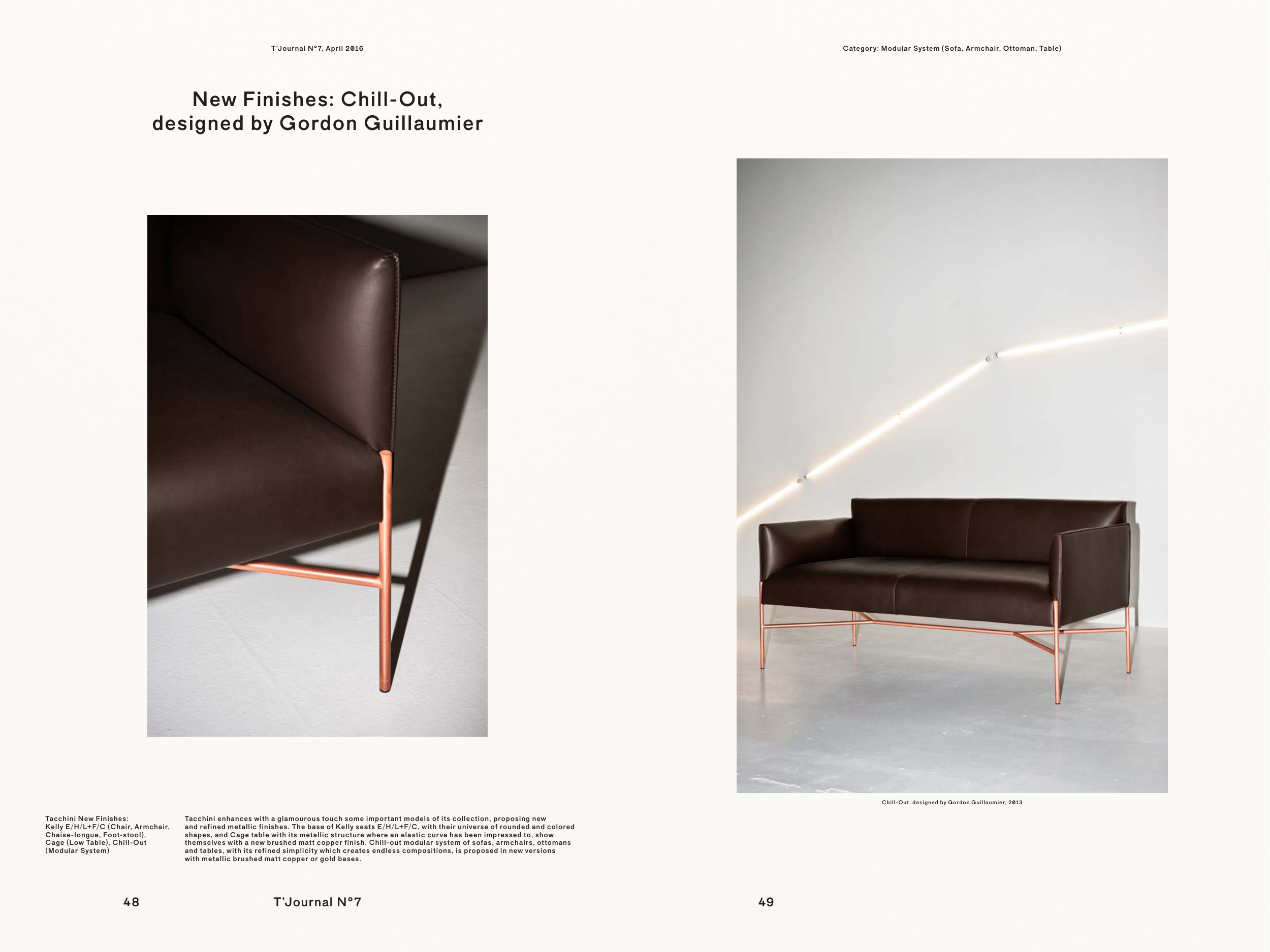 themselves with a new brushed matt copper finish. Chill-out modular system of sofas, armchairs, ottomans