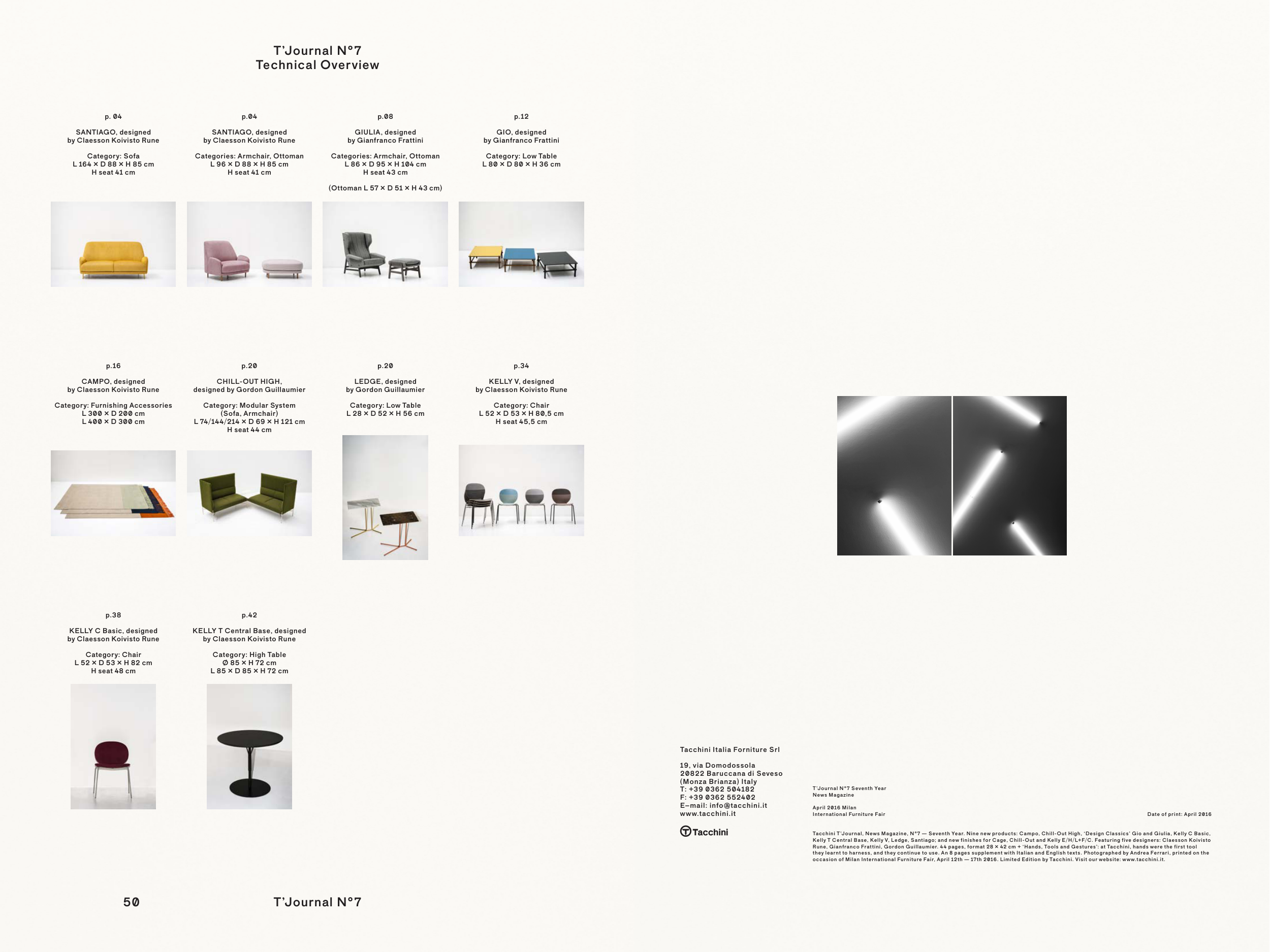 Tacchini T’Journal, News Magazine, N°7 — Seventh Year. Nine new products: Campo, Chill-Out High, ‘Design Classics’ Gio and Giulia, Kelly C Basic,