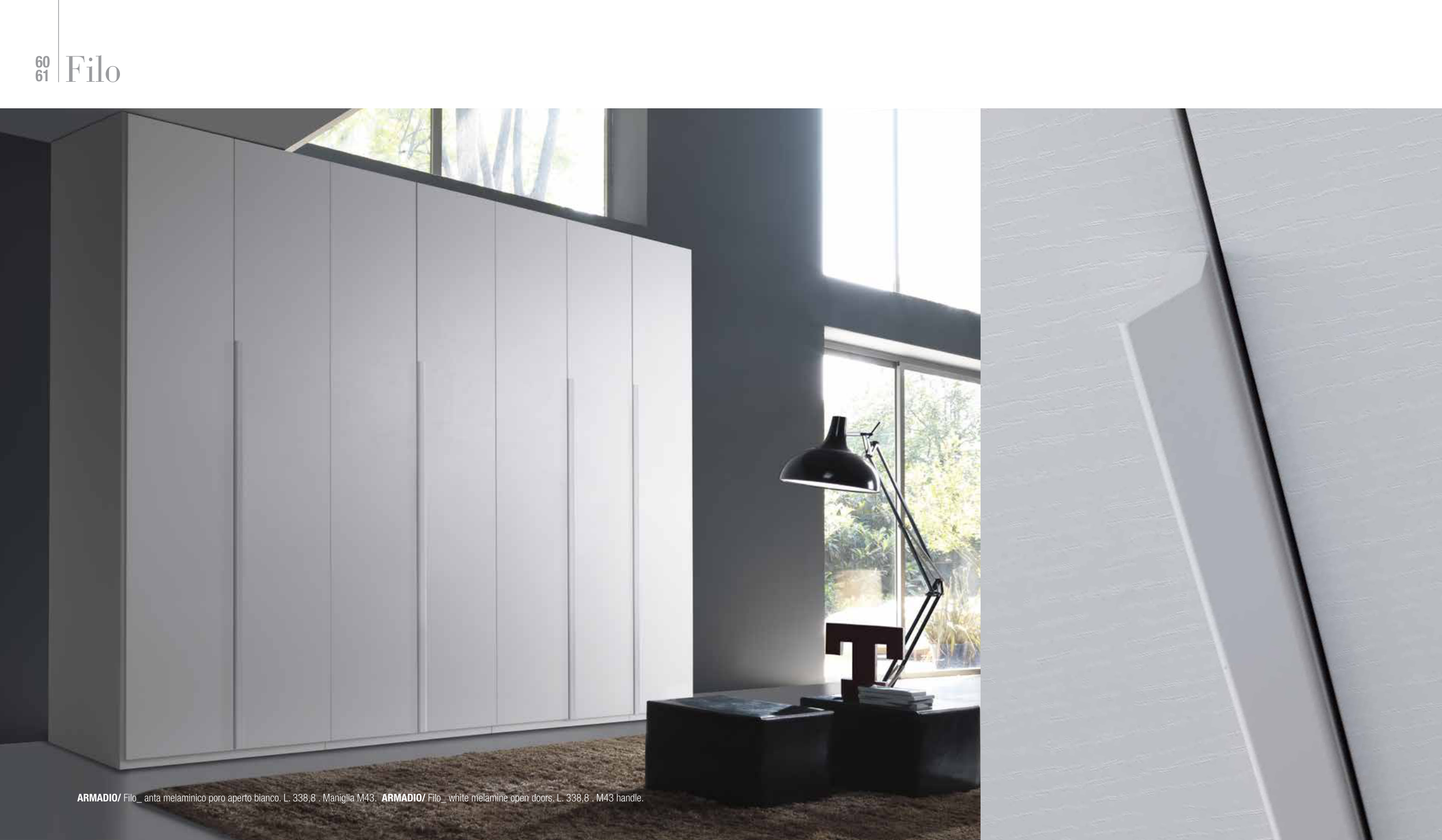 ARMADIO/ Filo_ anta melaminico poro aperto bianco. L. 338,8 . Maniglia M43. ARMADIO/ Filo_ white melamine open doors. L. 338,8 . M43 handle.