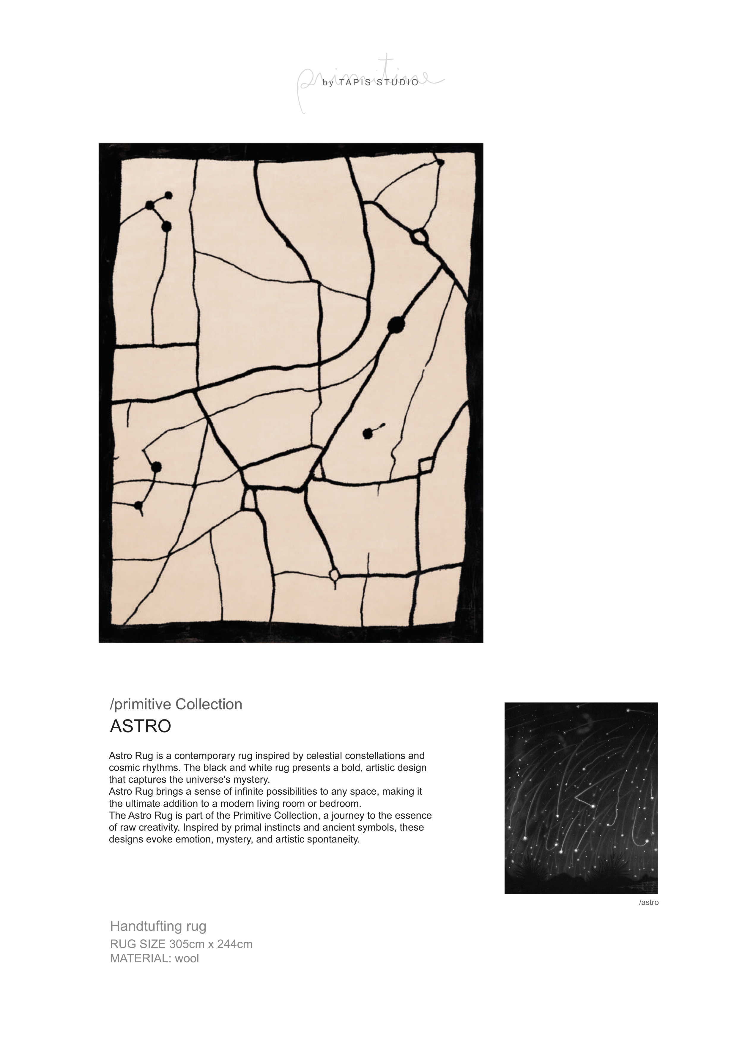 The Astro Rug is part of the Primitive Collection, a journey to the essence