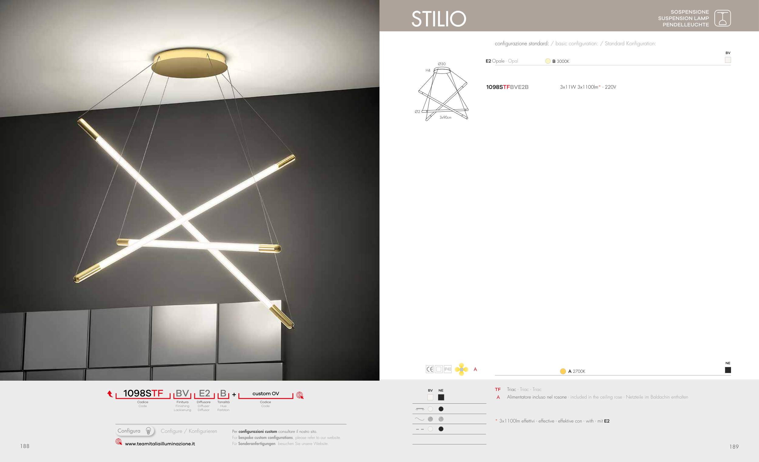 * 3x1100lm effettivi - effective - effektive con - with - mit E2