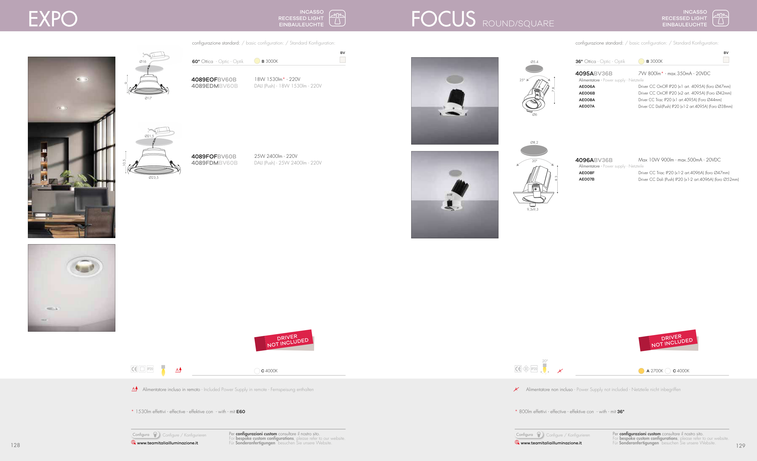 * 800lm effettivi - effective - effektive con - with - mit 36°