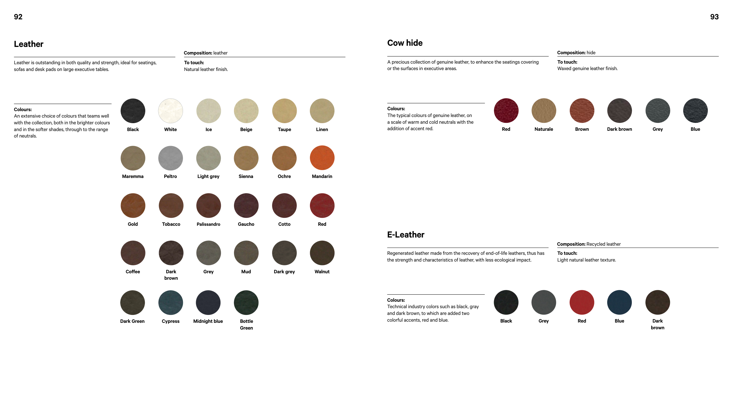 The typical colours of genuine leather, on