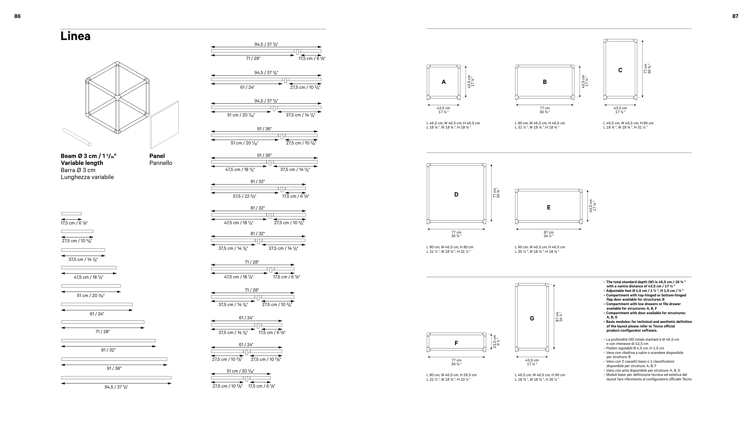 – Vano con anta disponibile per strutture: A, B, G