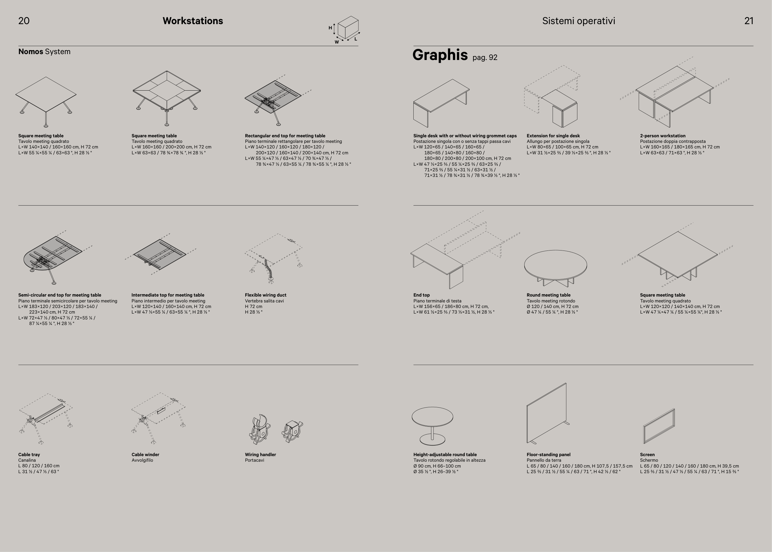 L 25 ⅔ / 31 ½ / 55 ¼ / 63 / 71 ", H 42 ⅓ / 62 "
