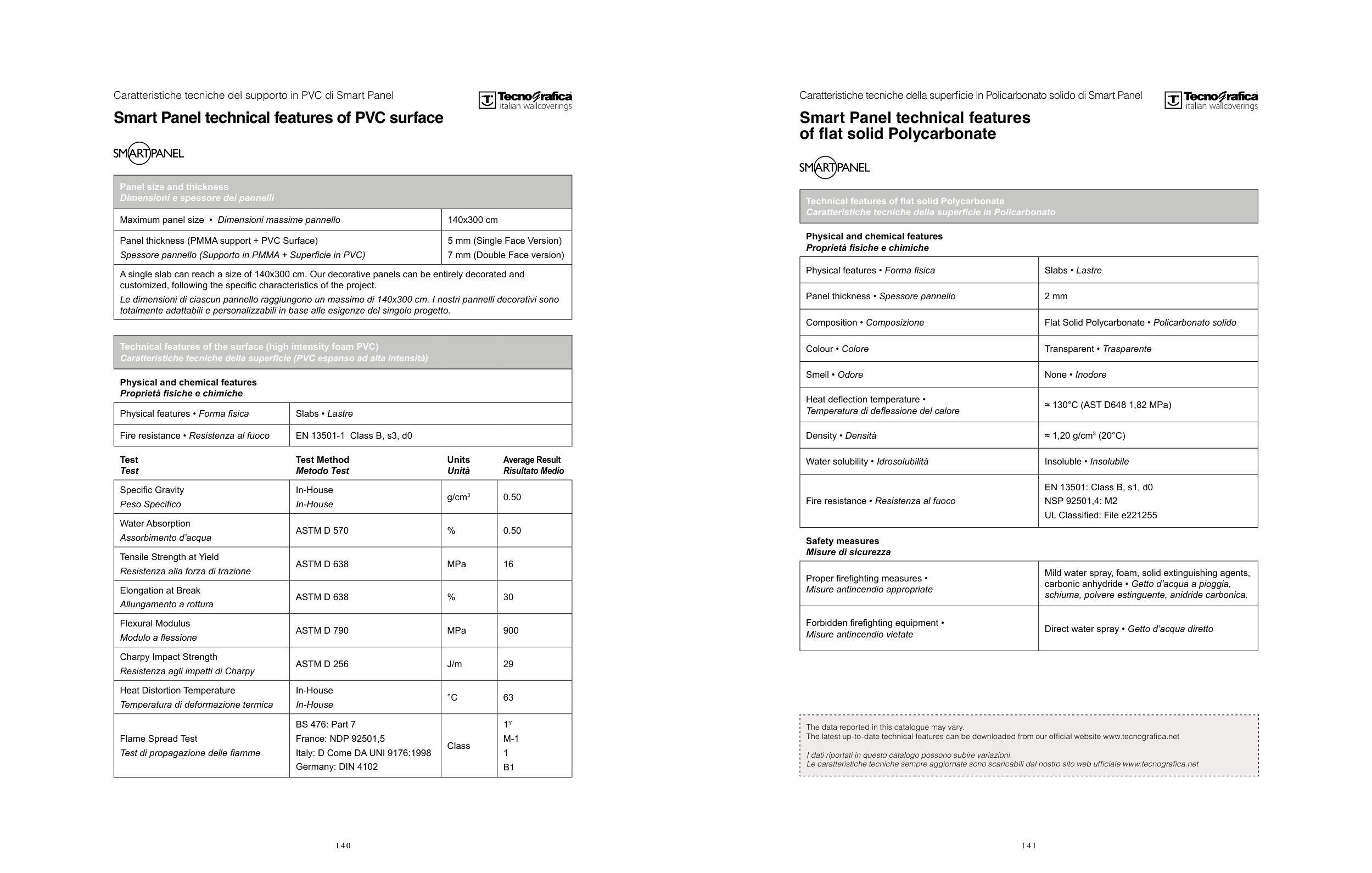 The data reported in this catalogue may vary.