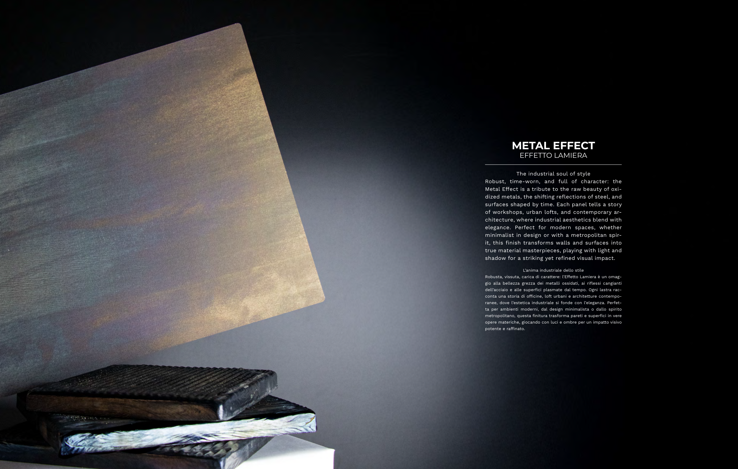 Metal Effect is a tribute to the raw beauty of oxi-