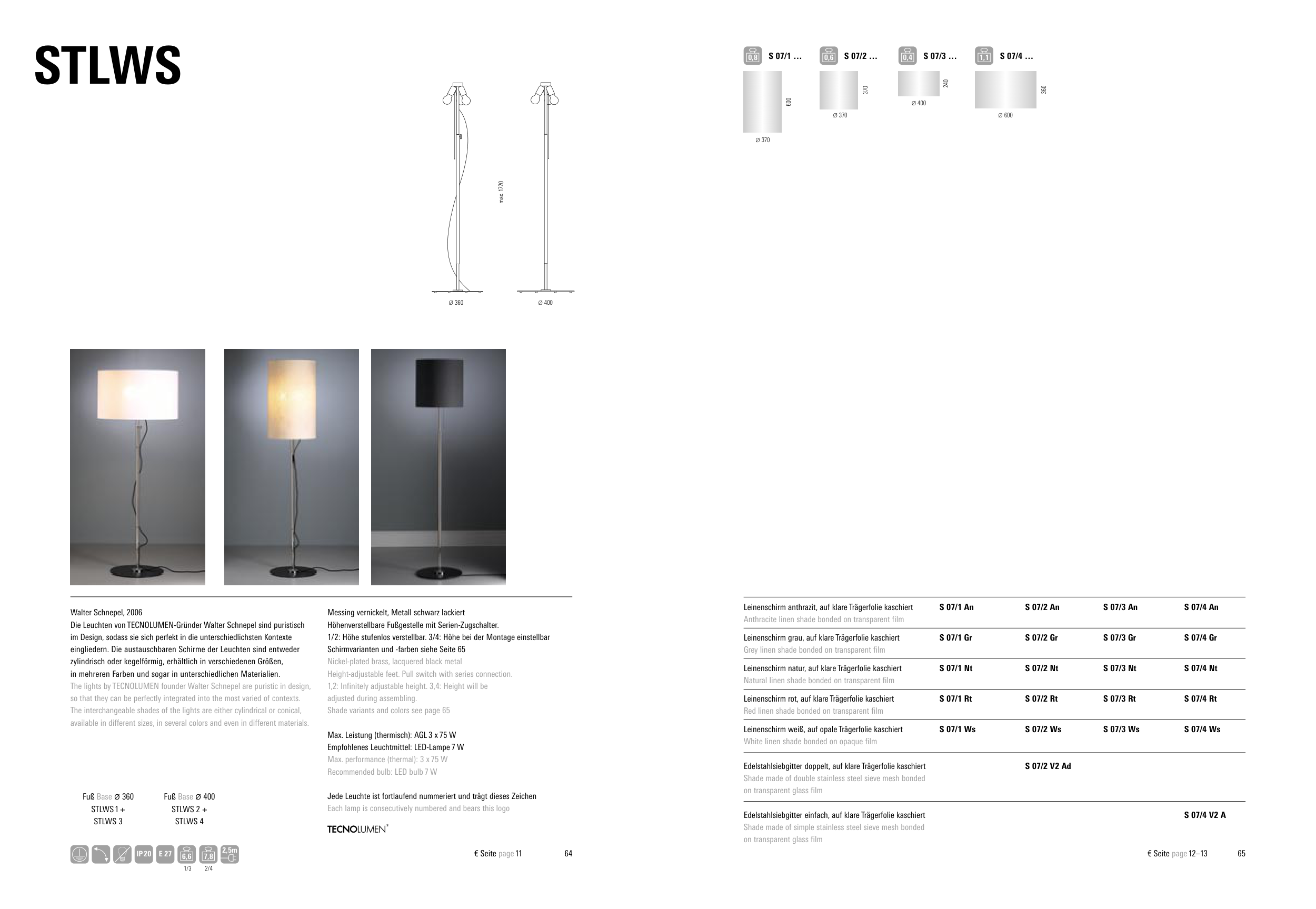 Schirmvarianten und -farben siehe Seite 65