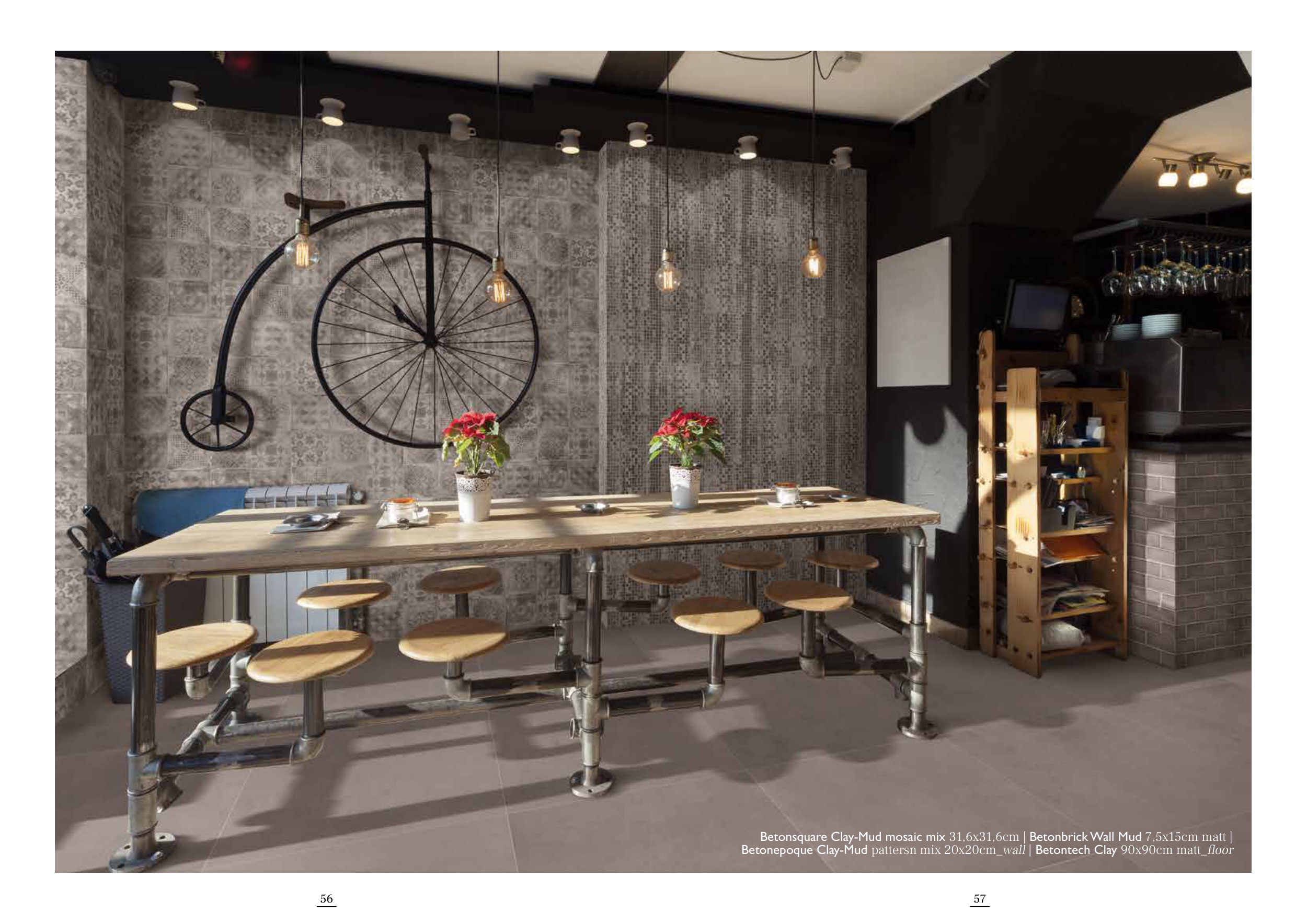 Betonepoque Clay-Mud pattersn mix 20x20cm_wall | Betontech Clay 90x90cm matt_floor
