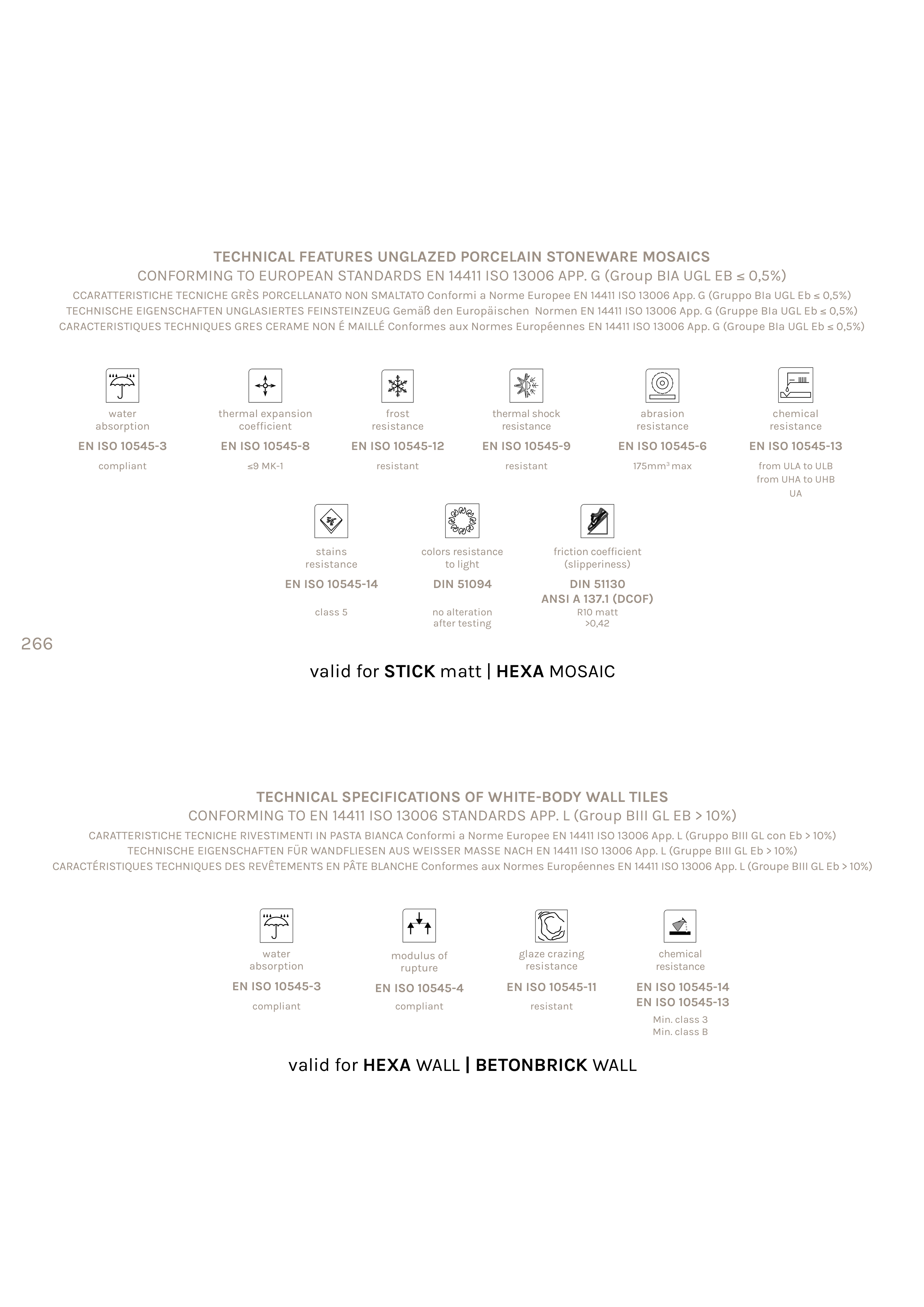 CONFORMING TO EUROPEAN STANDARDS EN 14411 ISO 13006 APP. G (Group BIA UGL EB ≤ 0,5%)
