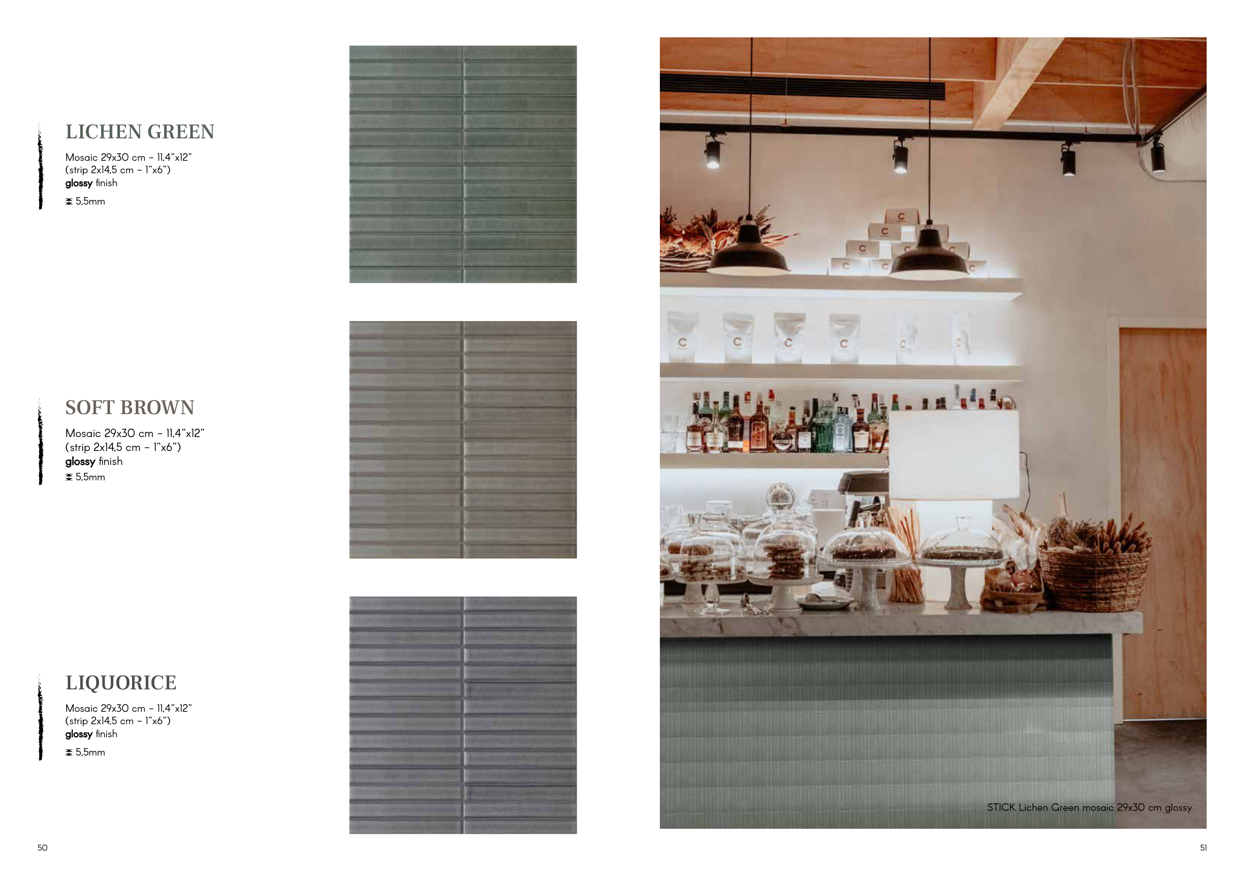 STICK Lichen Green mosaic 29x30 cm glossy