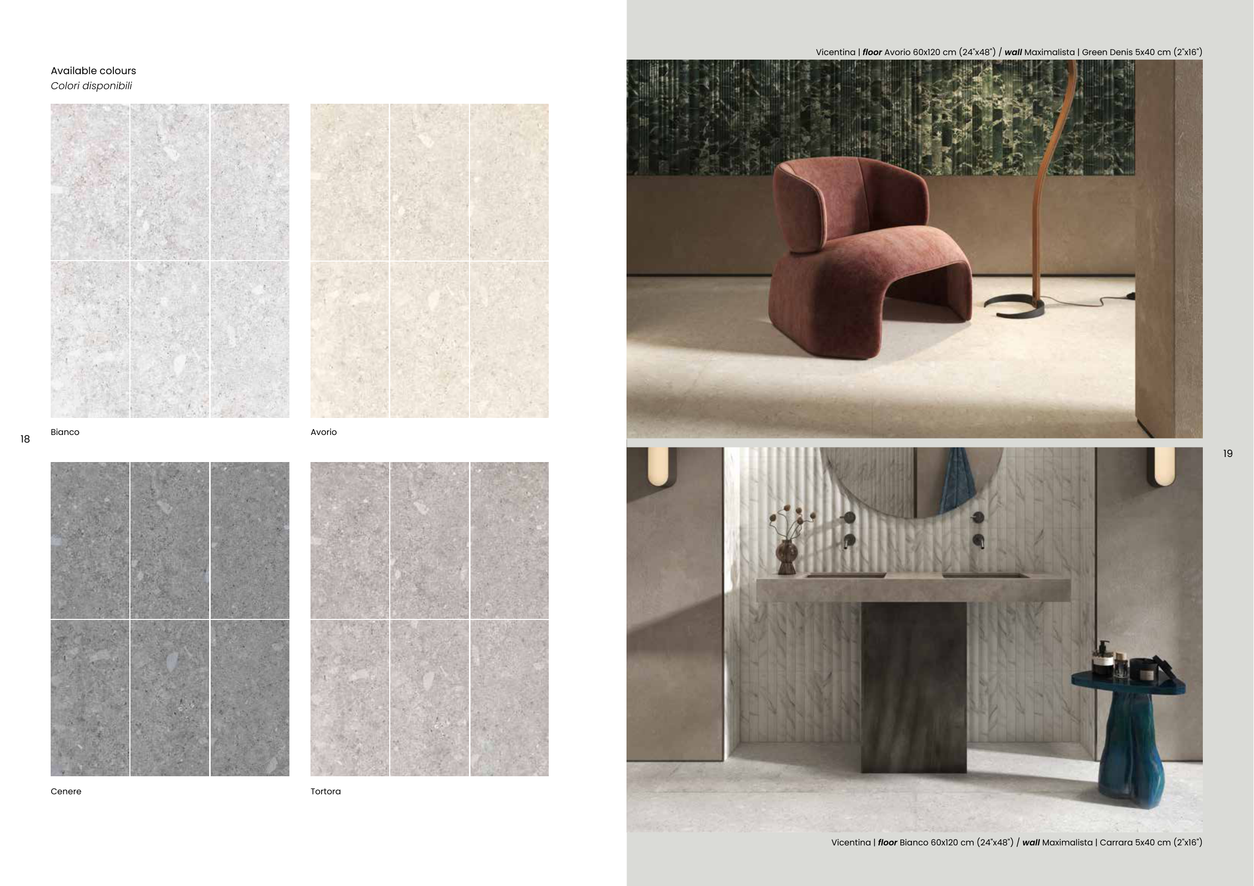 Vicentina | floor Avorio 60x120 cm (24"x48") / wall Maximalista | Green Denis 5x40 cm (2"x16")