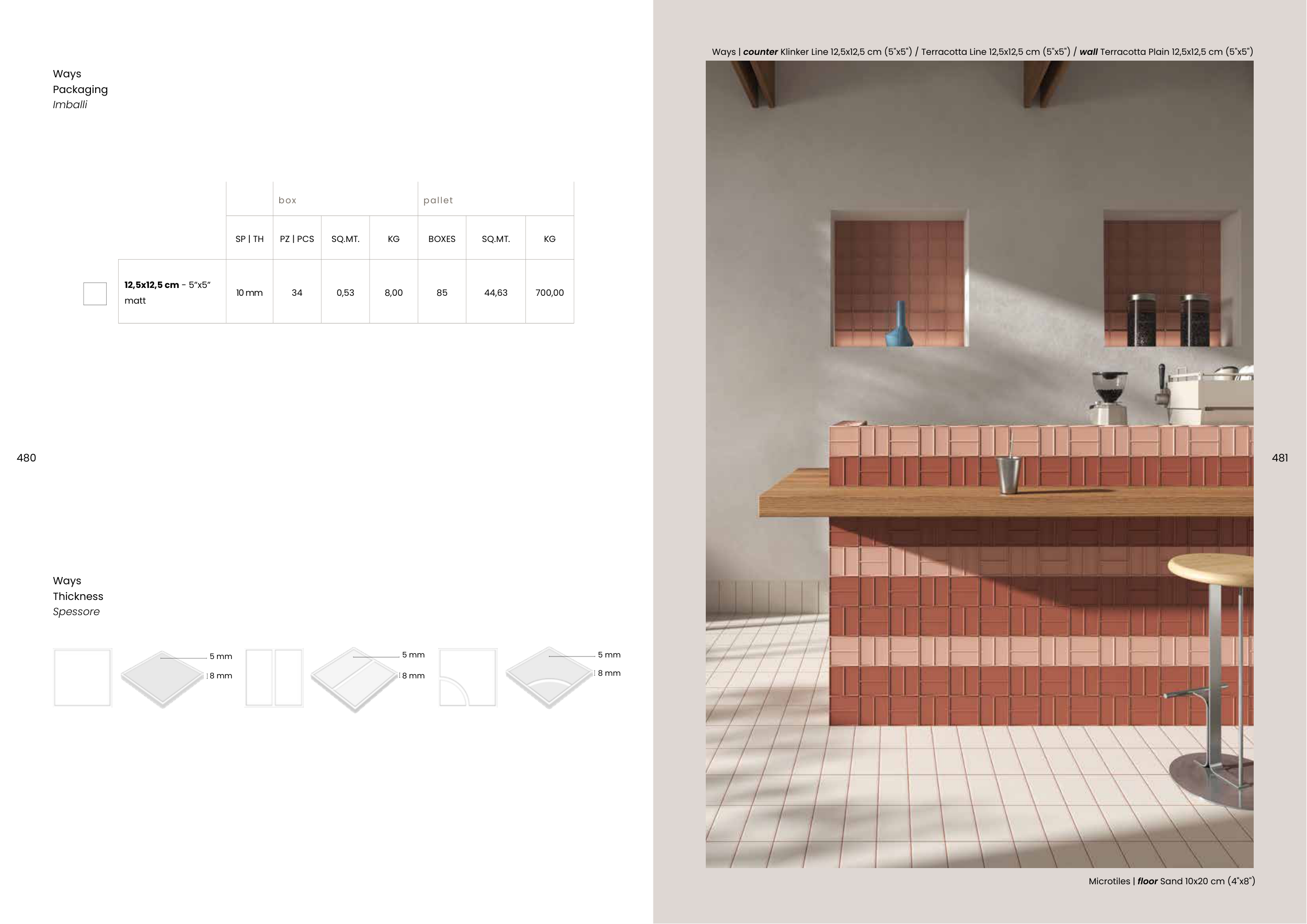 Ways | counter Klinker Line 12,5x12,5 cm (5"x5") / Terracotta Line 12,5x12,5 cm (5"x5") / wall Terracotta Plain 12,5x12,5 cm (5"x5")