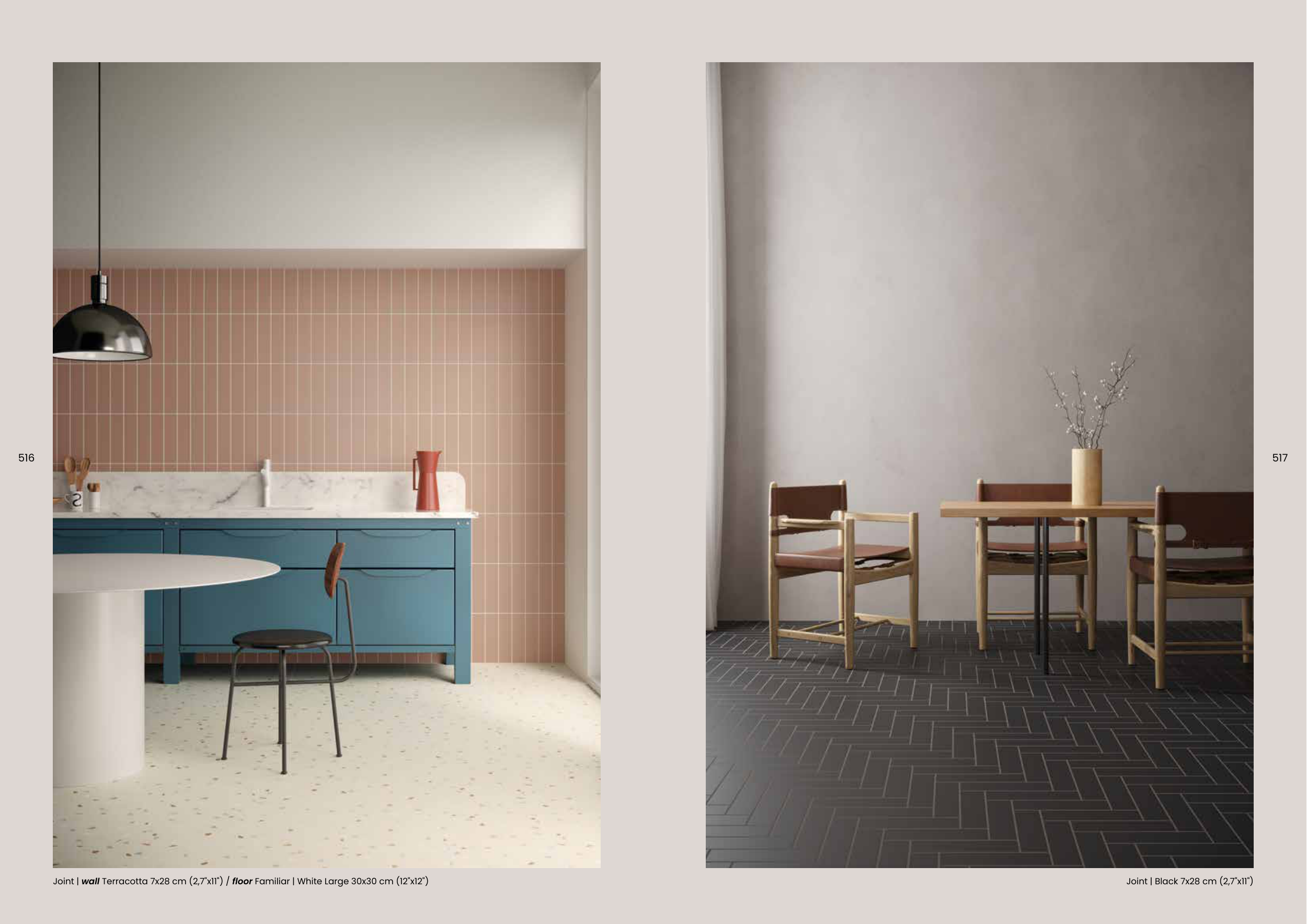 Joint | wall Terracotta 7x28 cm (2,7"x11") / floor Familiar | White Large 30x30 cm (12"x12")