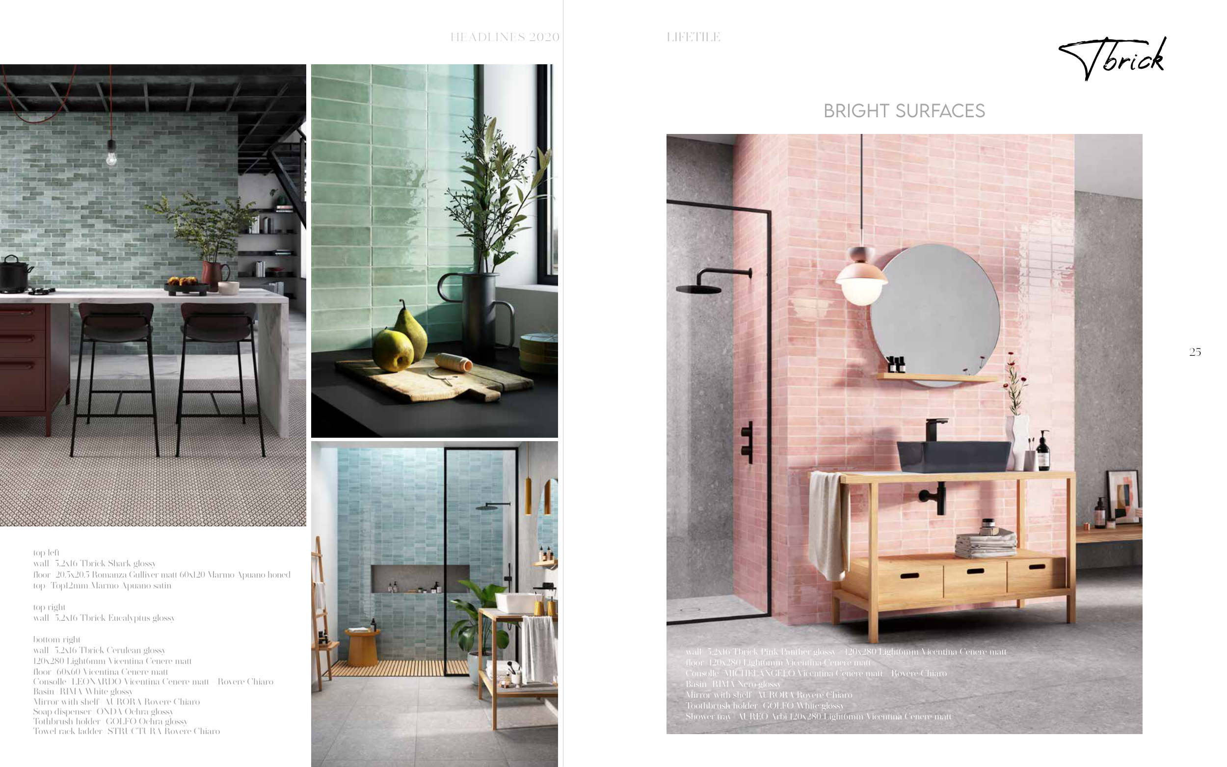 wall | 5,2x16 Tbrick Pink Panther glossy - 120x280 Light6mm Vicentina Cenere matt