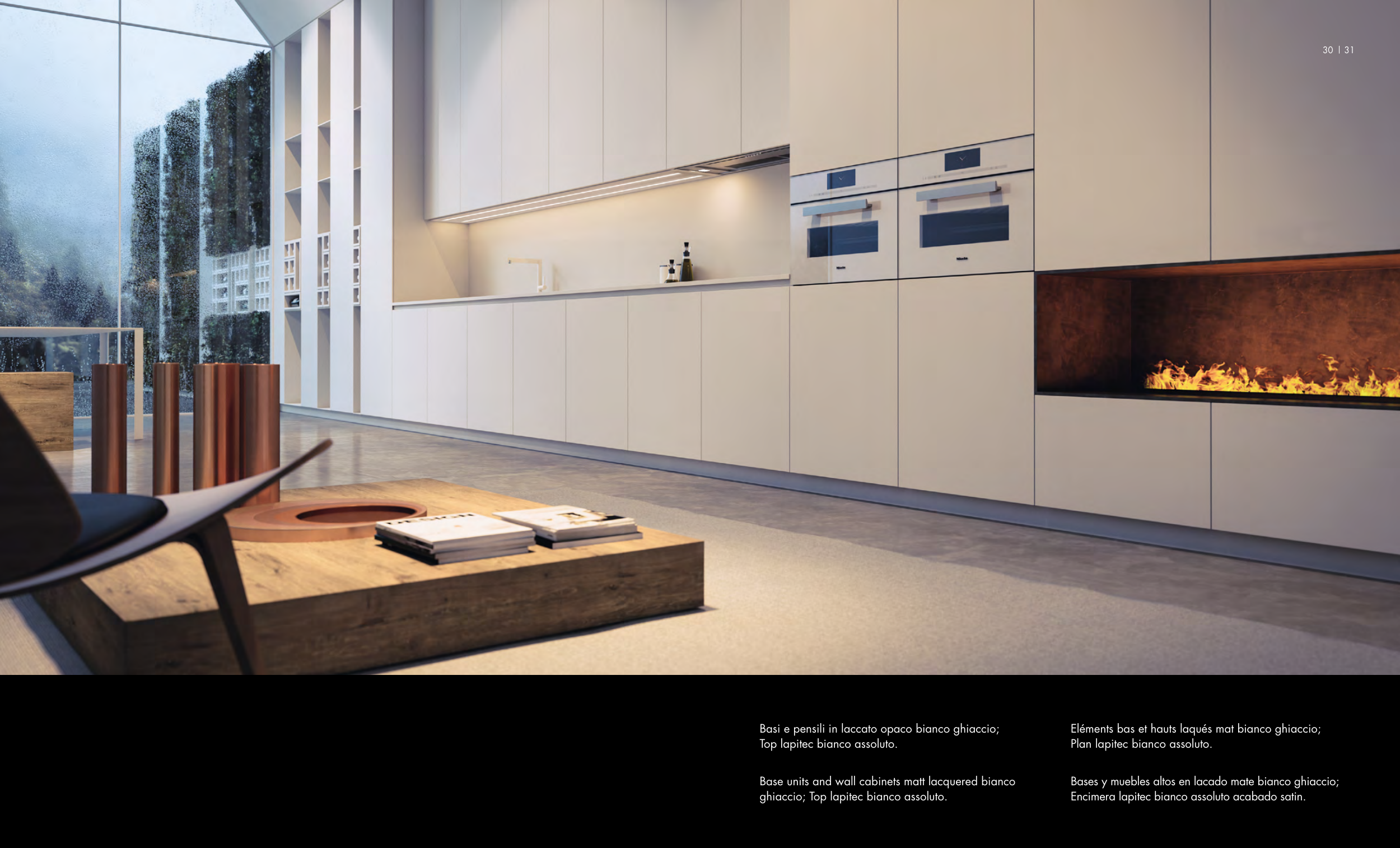 Bases y muebles altos en lacado mate bianco ghiaccio;