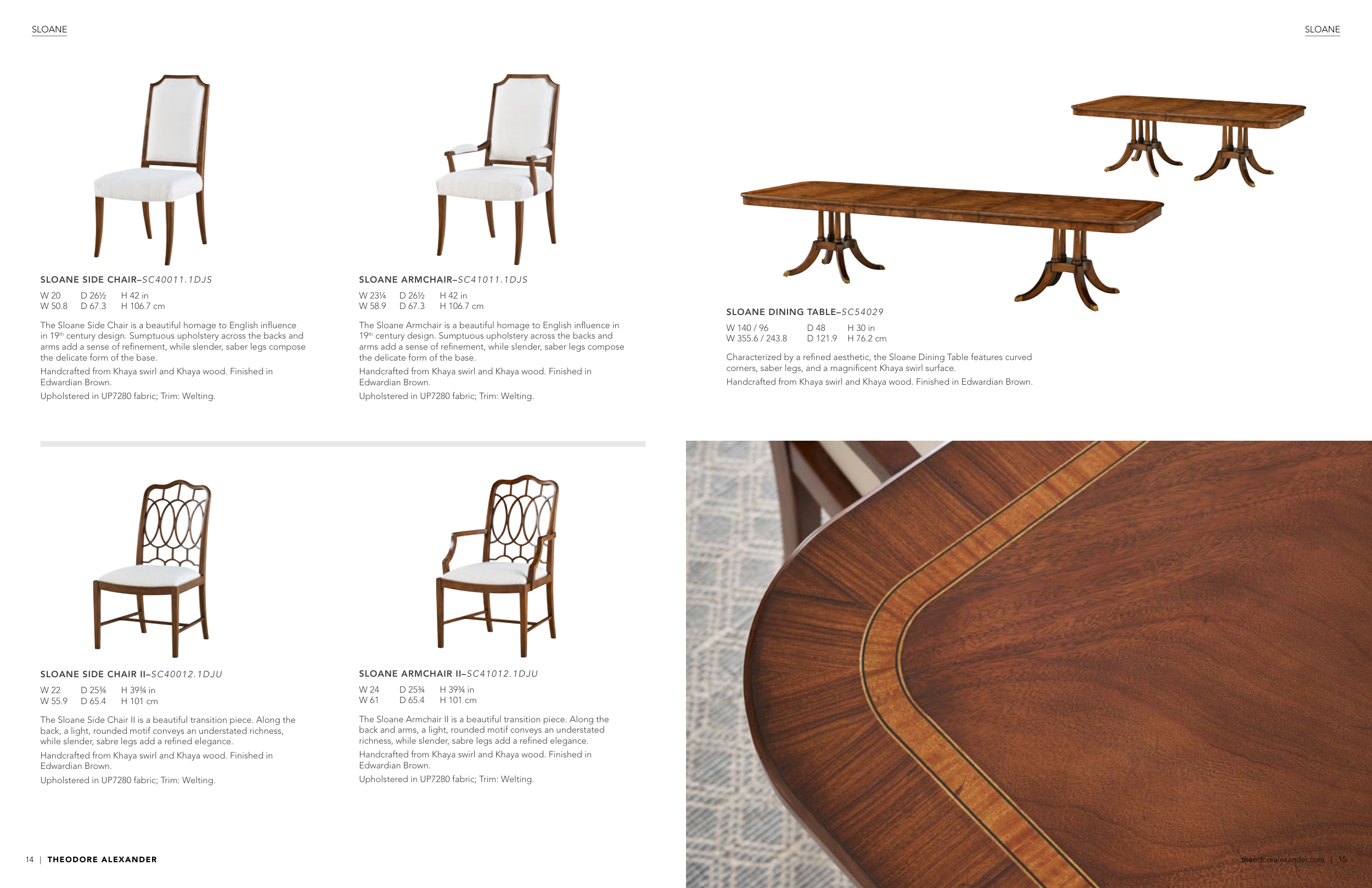 Handcrafted from Khaya swirl and Khaya wood. Finished in Edwardian Brown.